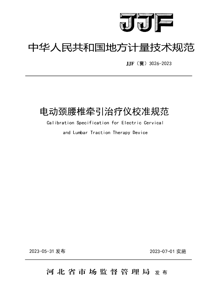 JJF(冀)3026-2023 电动颈腰椎牵引治疗仪校准规范