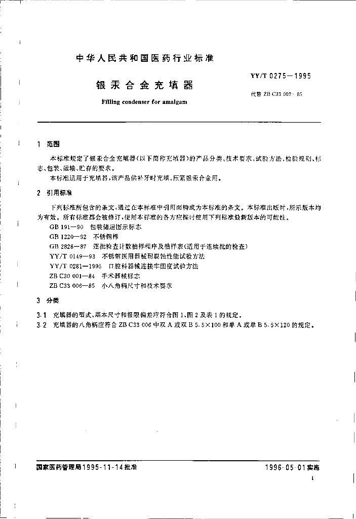 YY/T 0275-1995 银汞合金充填器