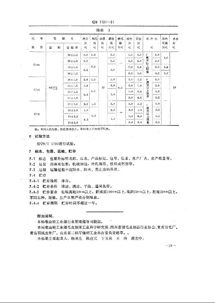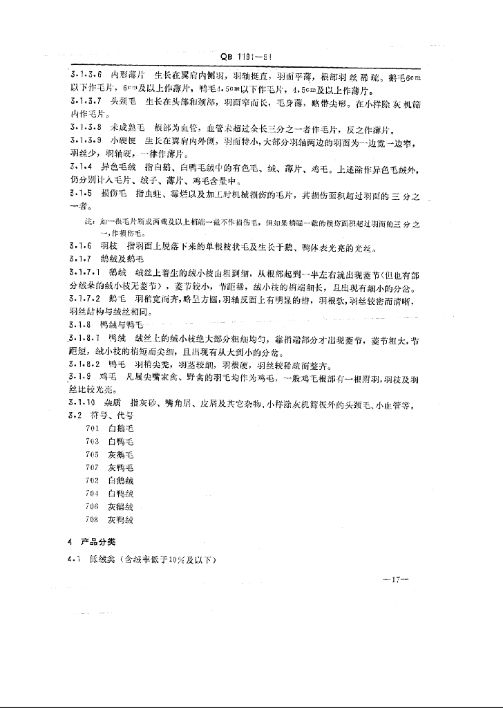 QB 1191-1991 羽绒