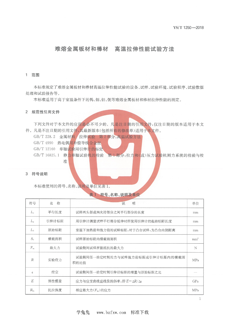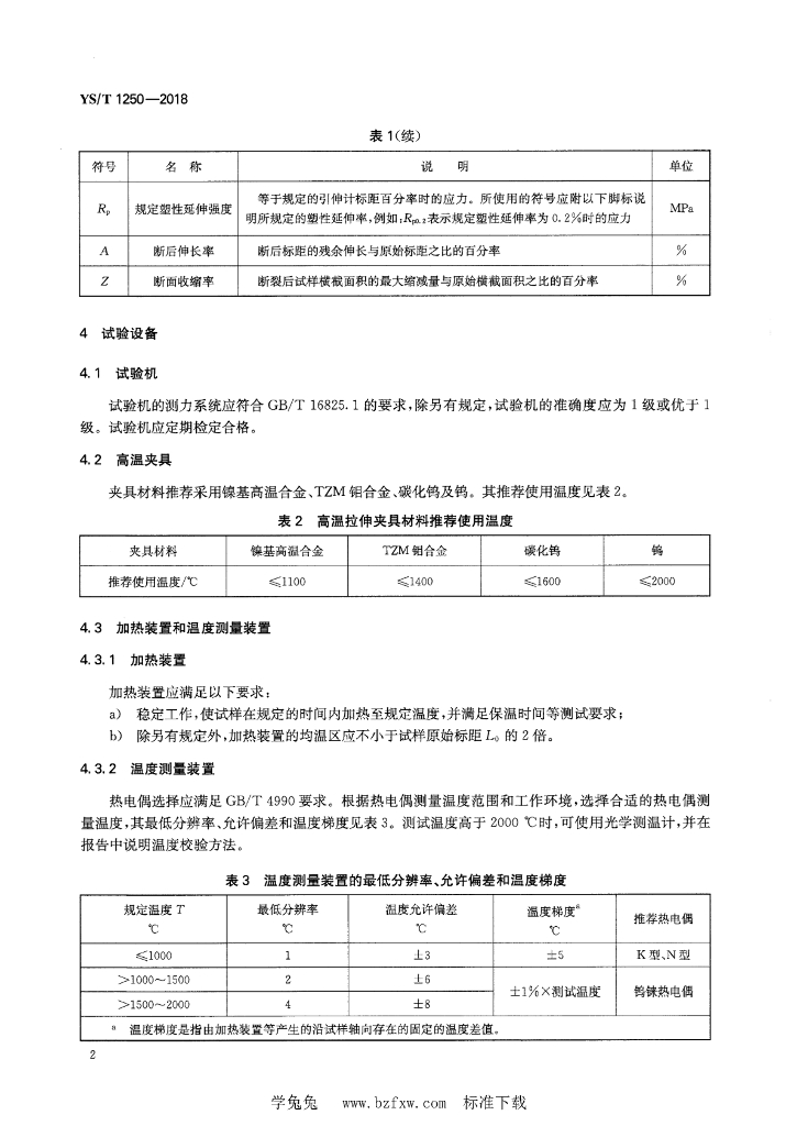 YS/T 1250-2018 难熔金属板材和棒材 高温拉伸性能试验方法