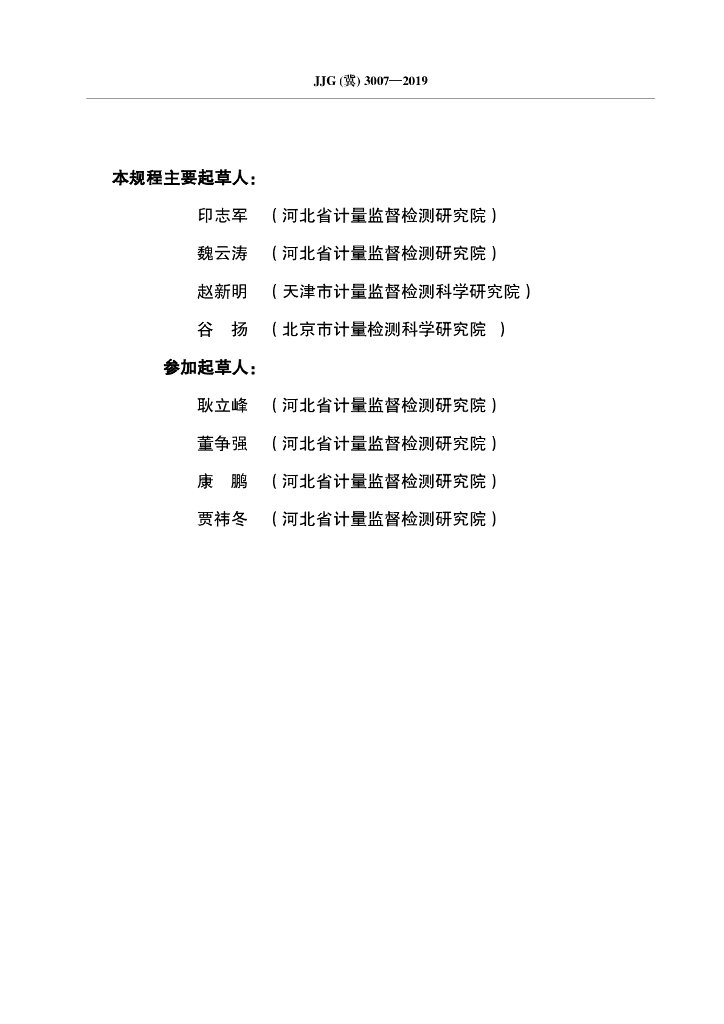 印志军(河北省计量监督检测研究院)、魏云涛(河北省计量监督检测研究院)、赵新明(天津市计量监督检测科学研究院)、谷扬(北京市计量检测科学研究院)、耿立峰(河北省计量监督检测研究院)、董争强(河北省计量监督检测研究院)、康鹏(河北省计量监督检测研究院)、贾祎冬(河北省计量监督检测研究院)
