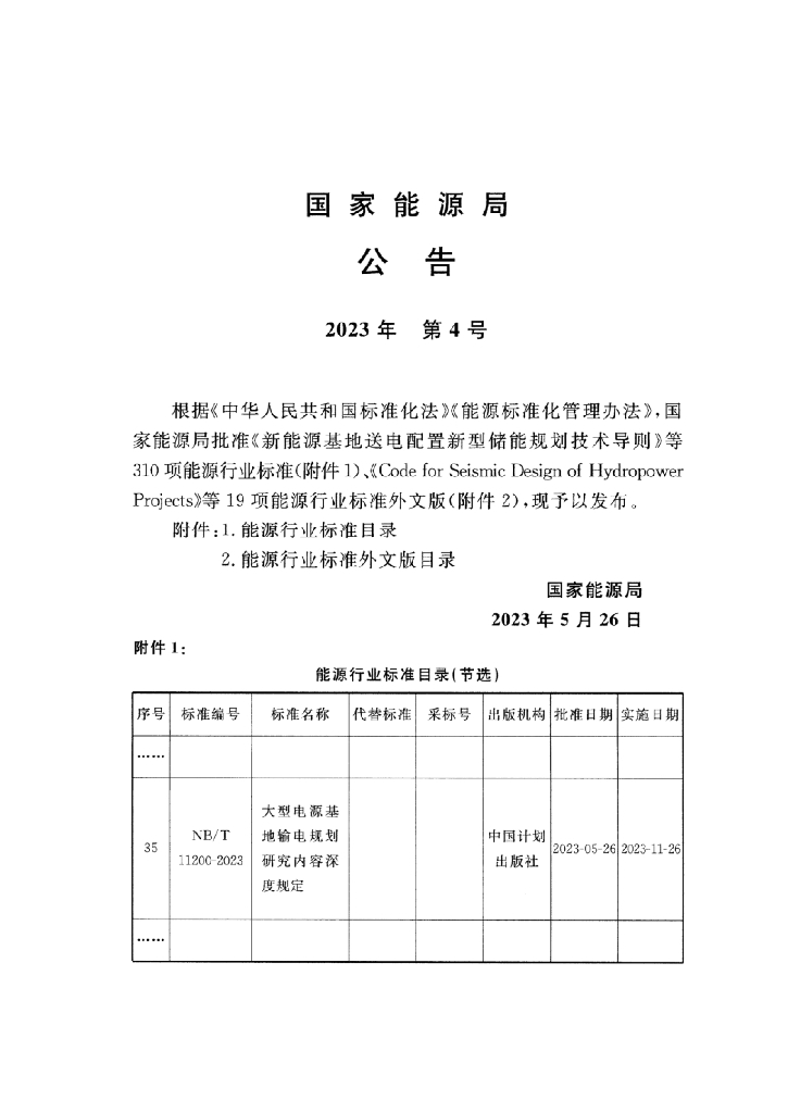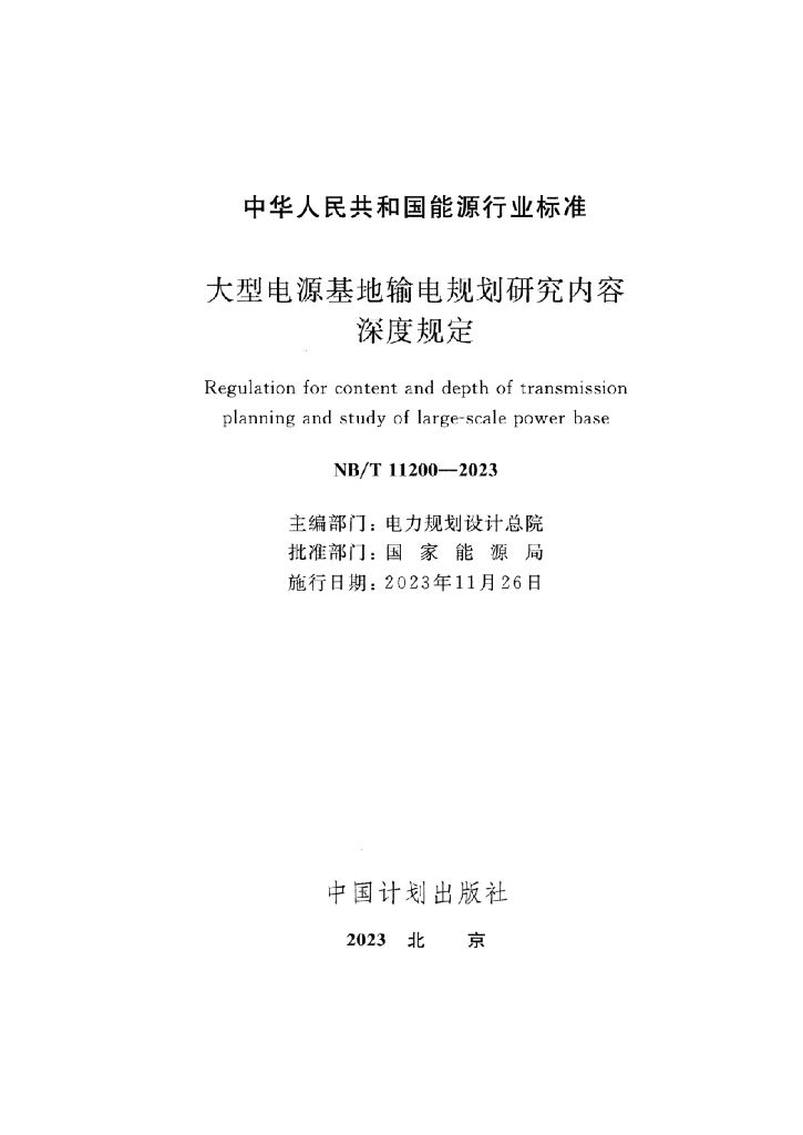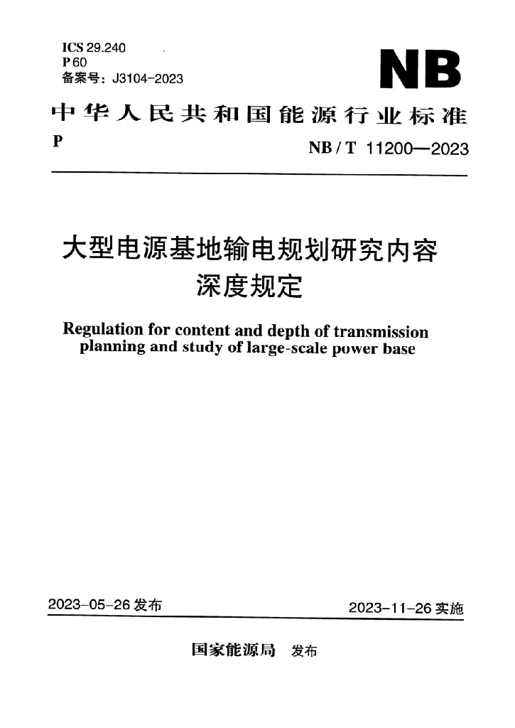 NB/T 11200-2023 大型电源基地输电规划研究内容深度规定