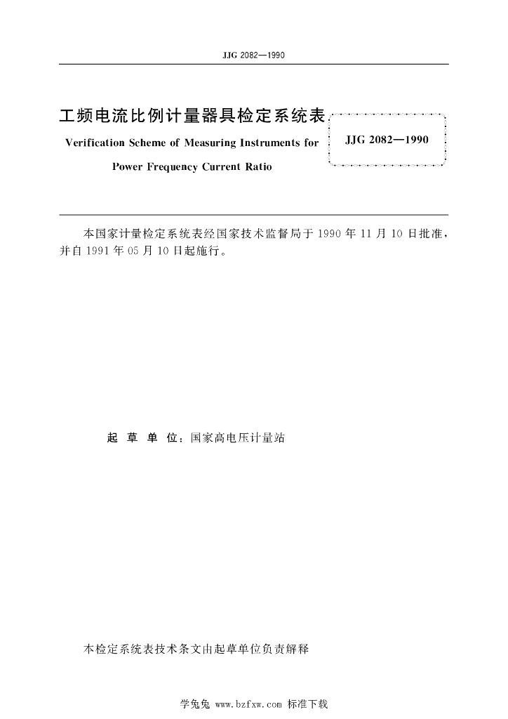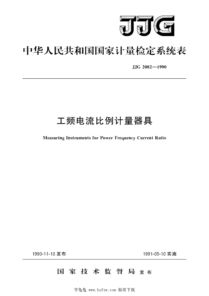 JJG 2082-1990 工频电流比例计量器具