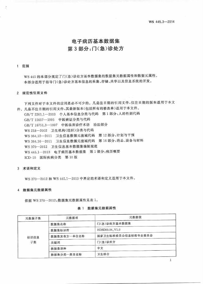 WS 445.3-2014 电子病历基本数据集 第3部分:门(急)诊处方