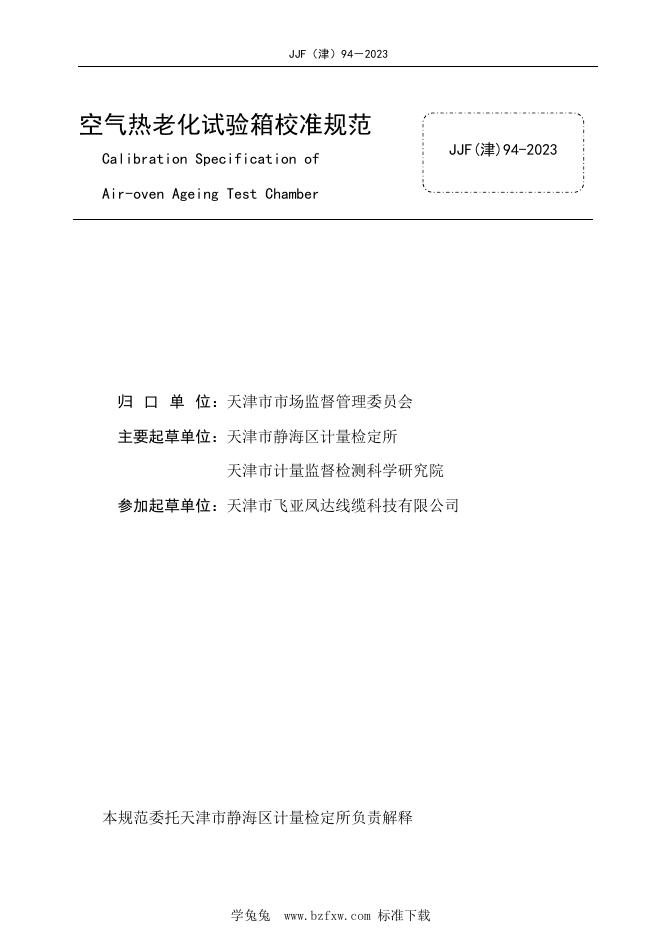 JJF(津)94-2023 空气热老化试验箱校准规范