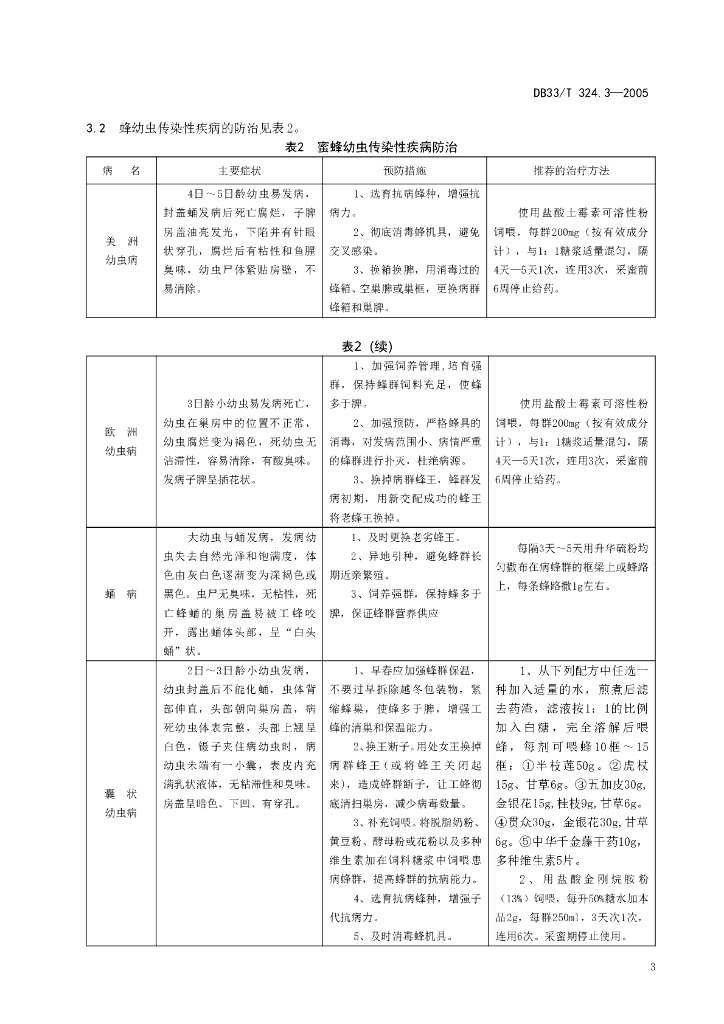 DB33/T 324.3-2005 浙江蜜蜂 第3部分:疾病防治