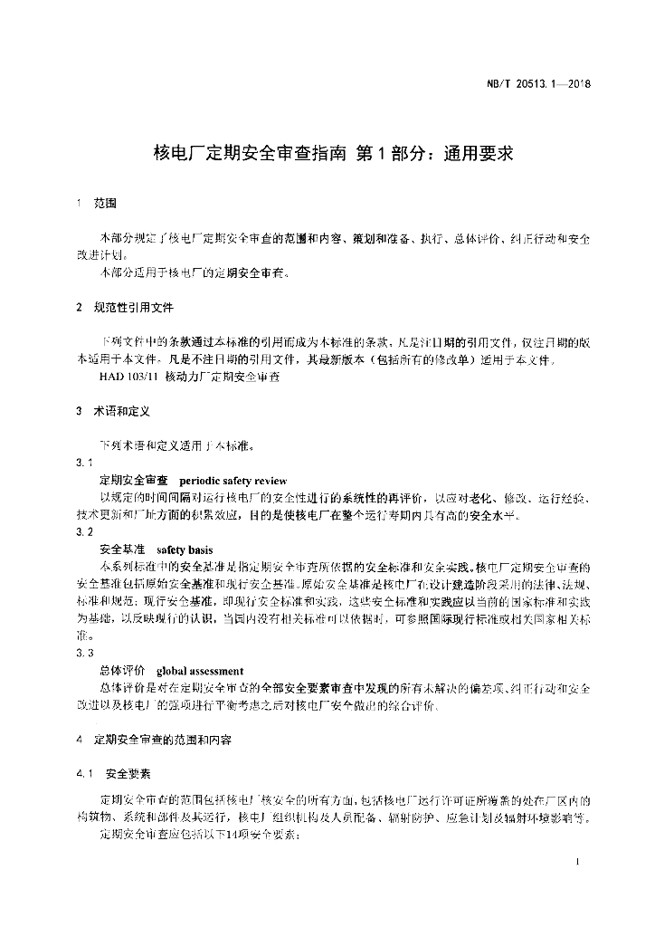 NB/T 20513.1-2018 核电厂定期安全审查指南 第1部分:通用要求