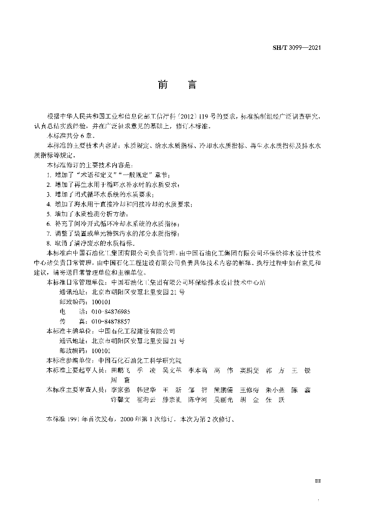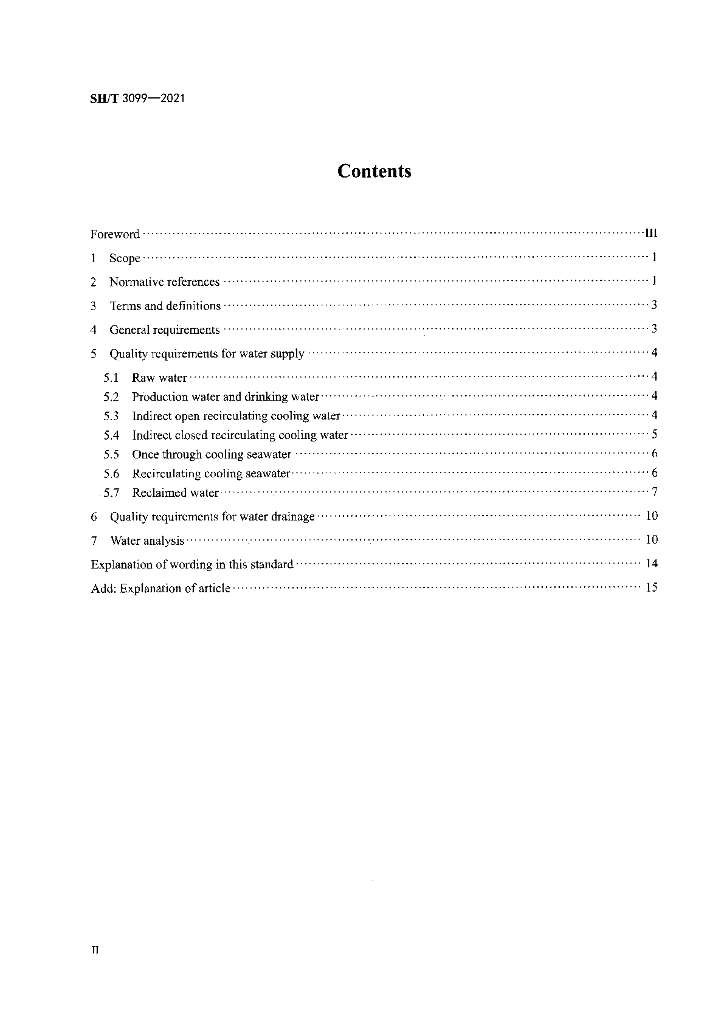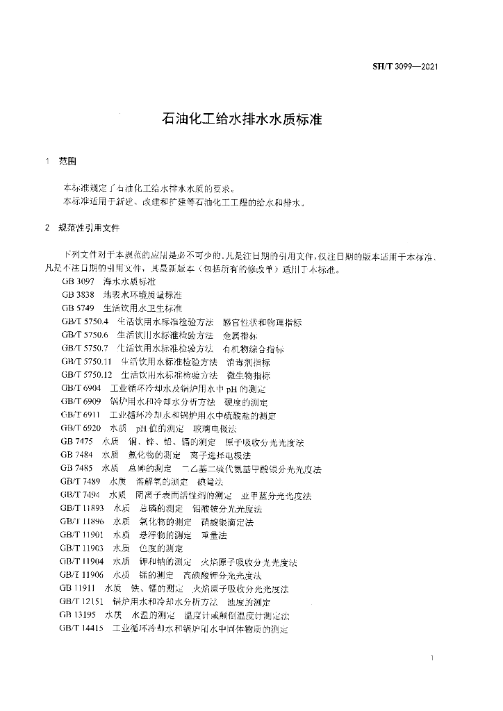 SH/T 3099-2021 石油化工给水排水水质标准