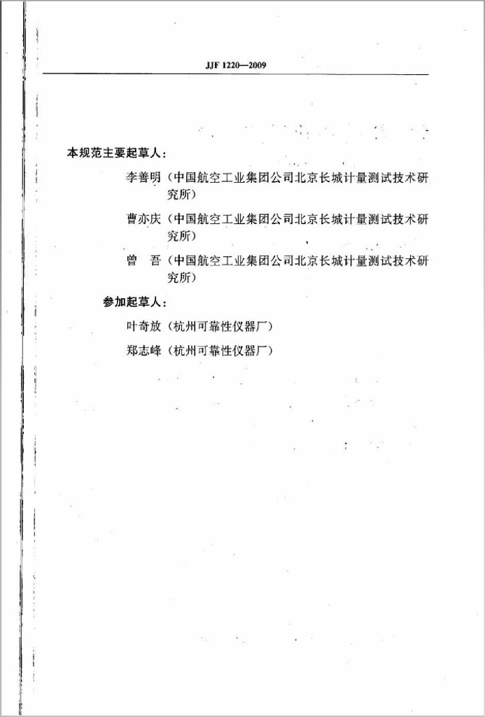 李善明(中国航空工业集团公司北京长城计量测试技术研究所)、曹亦庆(中国航空工业集团公司北京长城计量测试技术研究所)、曾吾(中国航空工业集团公司北京长城计量测试技术研究所)、叶奇放(杭州可靠性仪器厂)、郑志峰(杭州可靠性仪器厂)