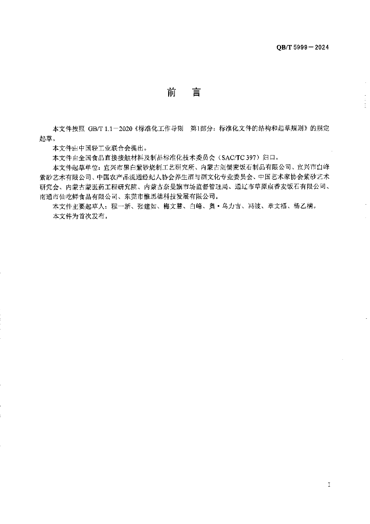QB/T 5999-2024 麦饭石紫陶器皿