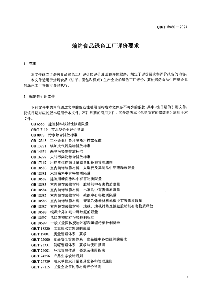 QB/T 5980-2024 焙烤食品绿色工厂评价要求