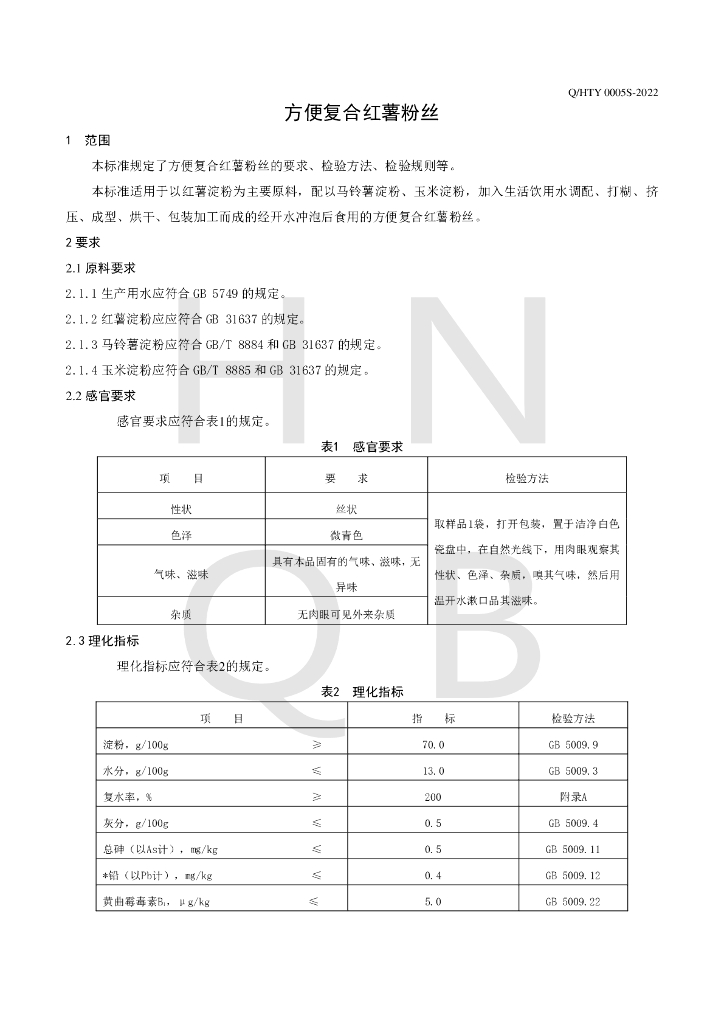 Q/HTY 0005S-2022 方便复合红薯粉丝