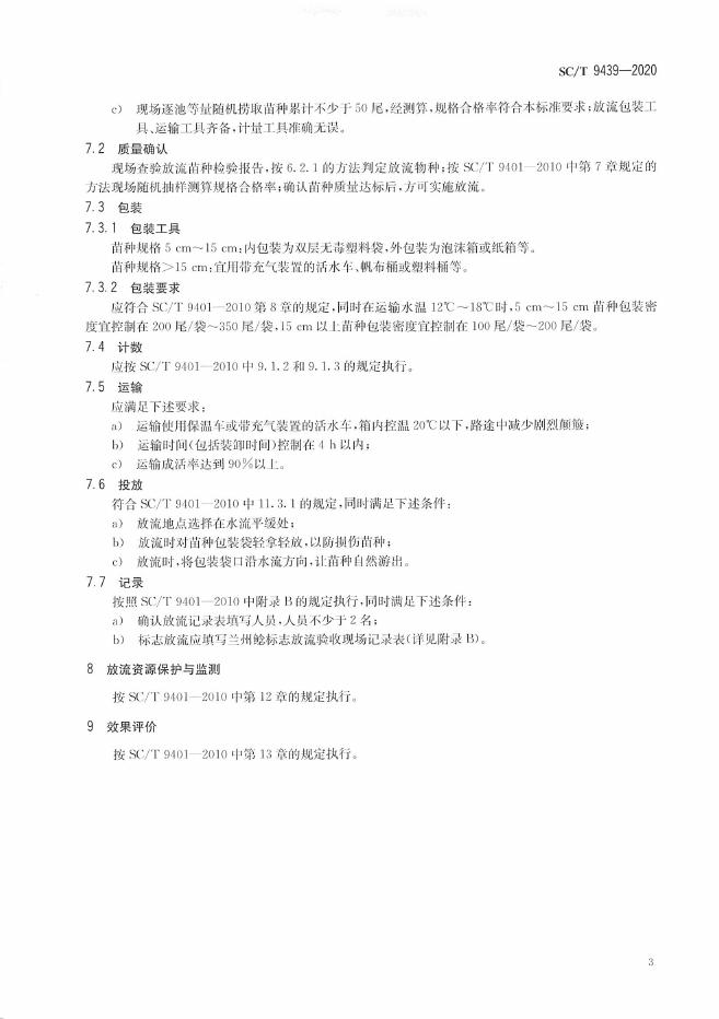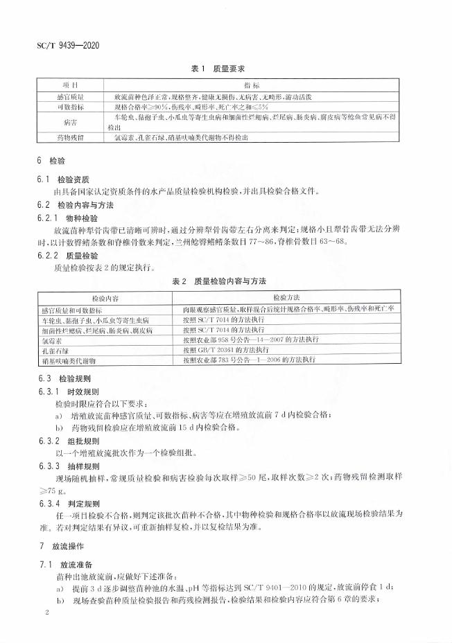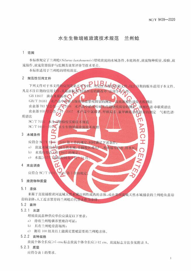 SC/T 9439-2020 水生生物增殖放流技术规范 兰州鲶
