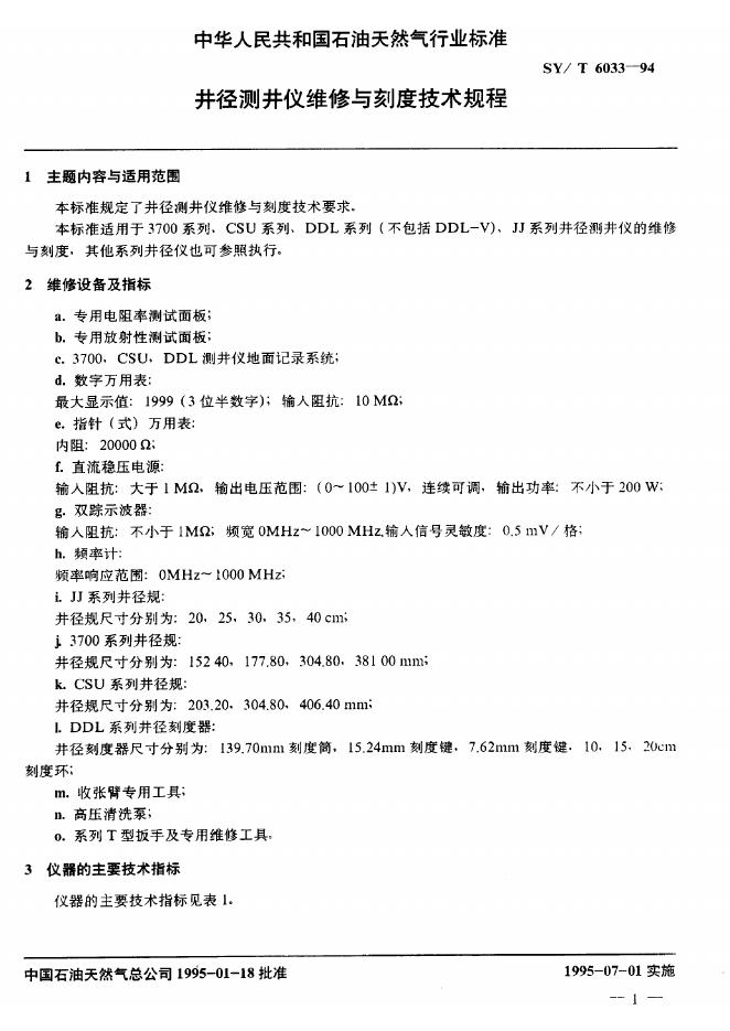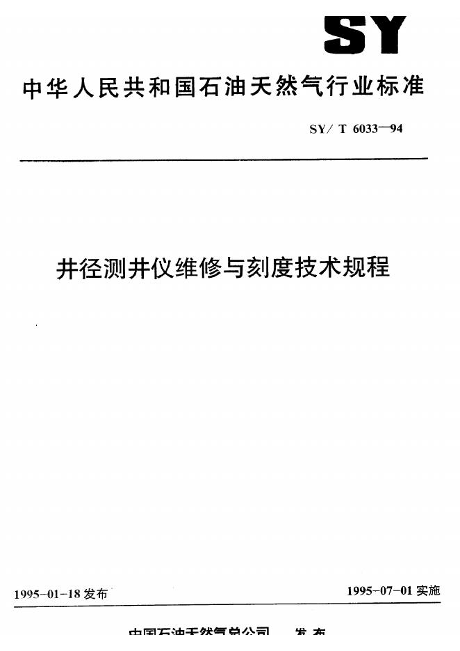 SY/T 6033-1994 井径测井仪维修与刻度技术规程