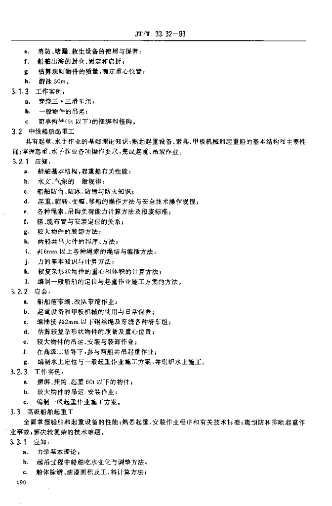 JT/T 33.32-1993 交通行业工人技术等级标准公路工程与航务工程船舶起重工