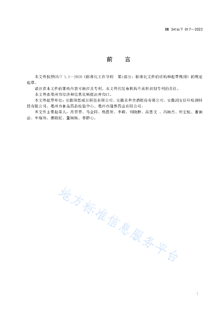 安徽瑞思威尔科技有限公司、安徽古井贡酒股份有限公司、安徽润安信科检测科技有限公司、亳州市食品药品检验中心、亳州市隆泰药业有限公司