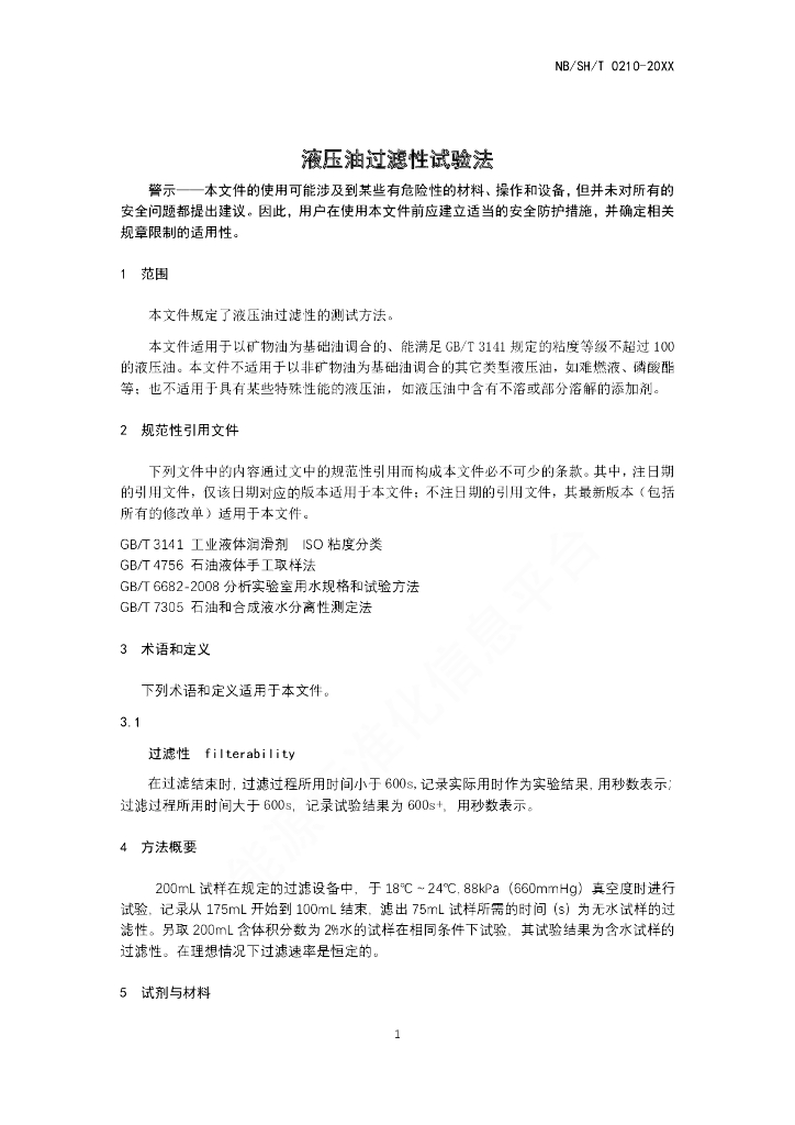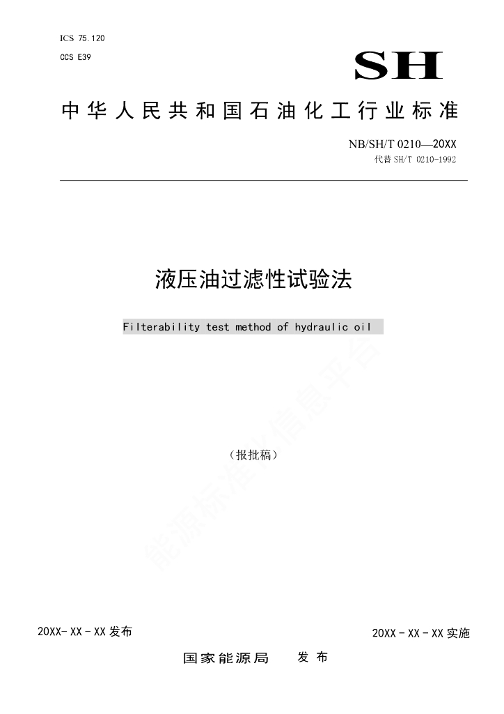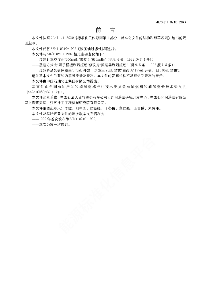 NB/SH/T 0210-2022 液压油过滤性试验法