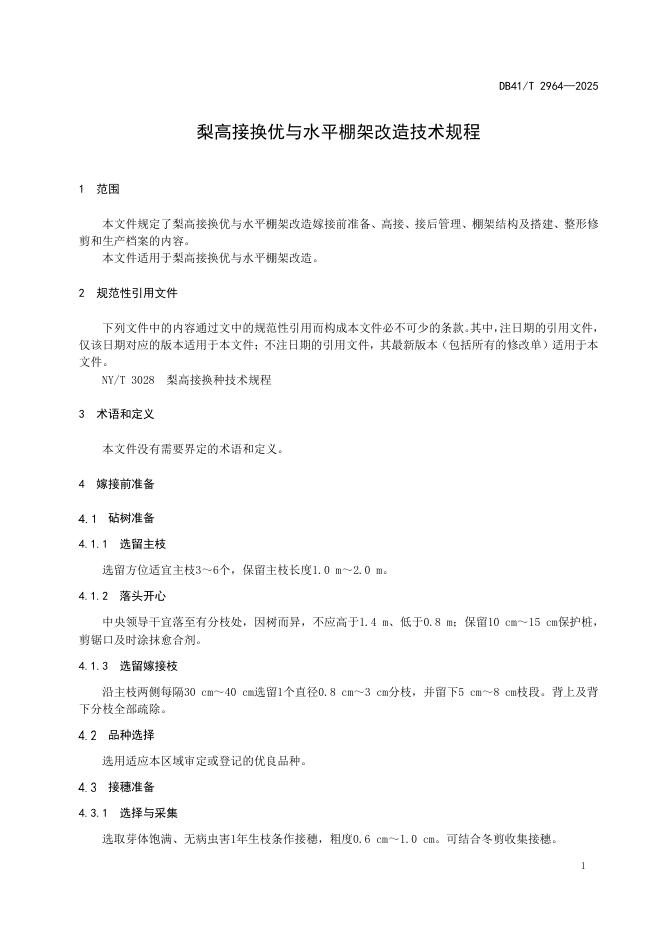 DB41/T 2964-2025 梨高接换优与水平棚架改造技术规程