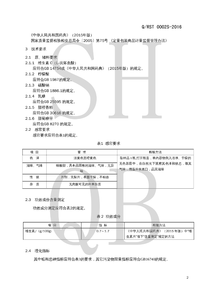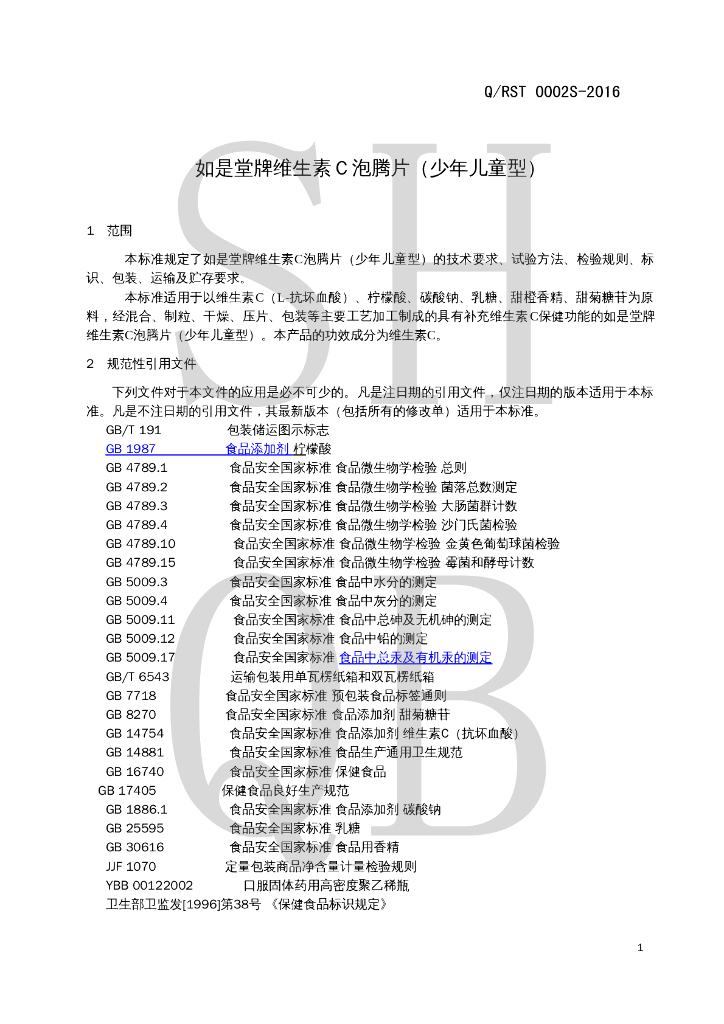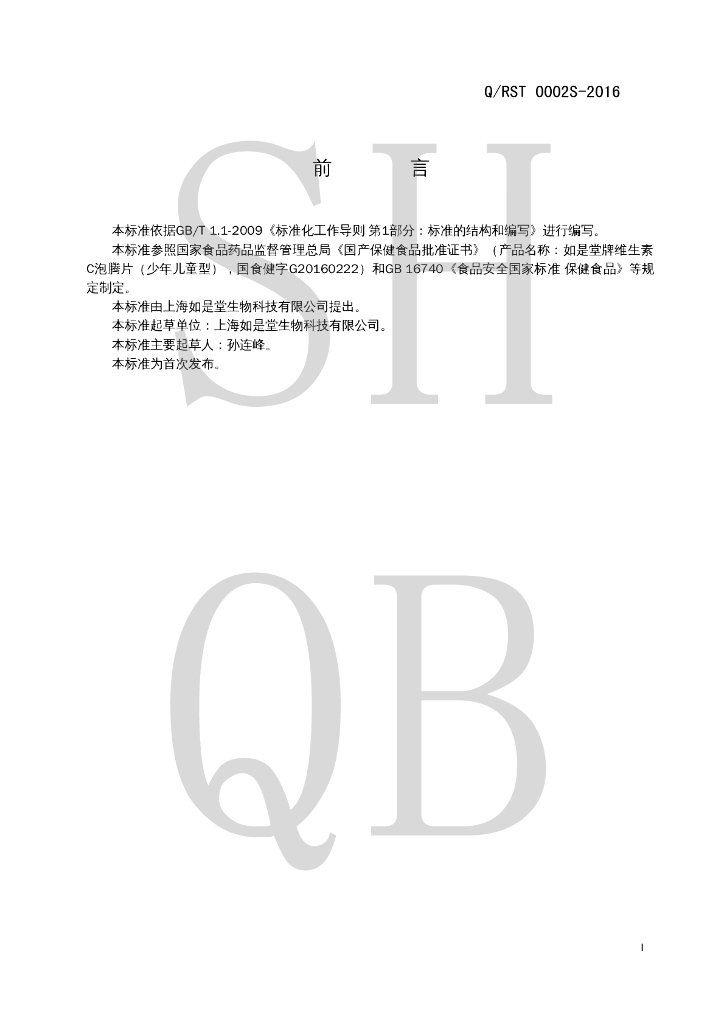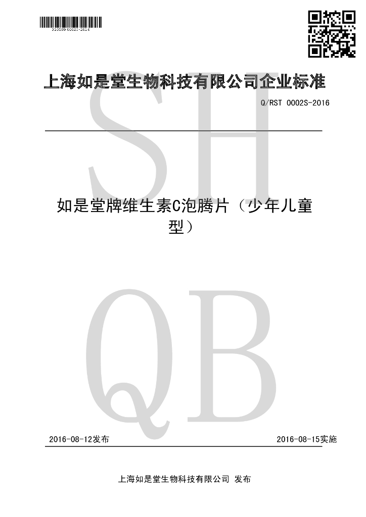 Q/RST 0002S-2016 如是堂牌维生素C泡腾片(少年儿童型)