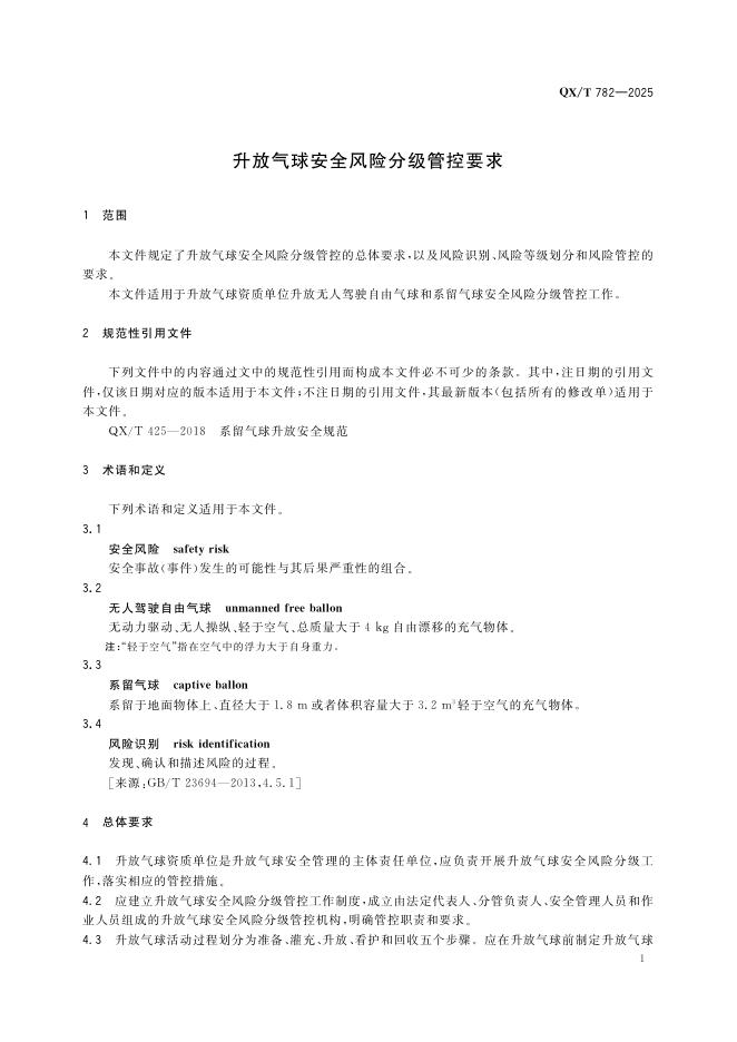 QX/T 782-2025 升放气球安全风险分级管控要求