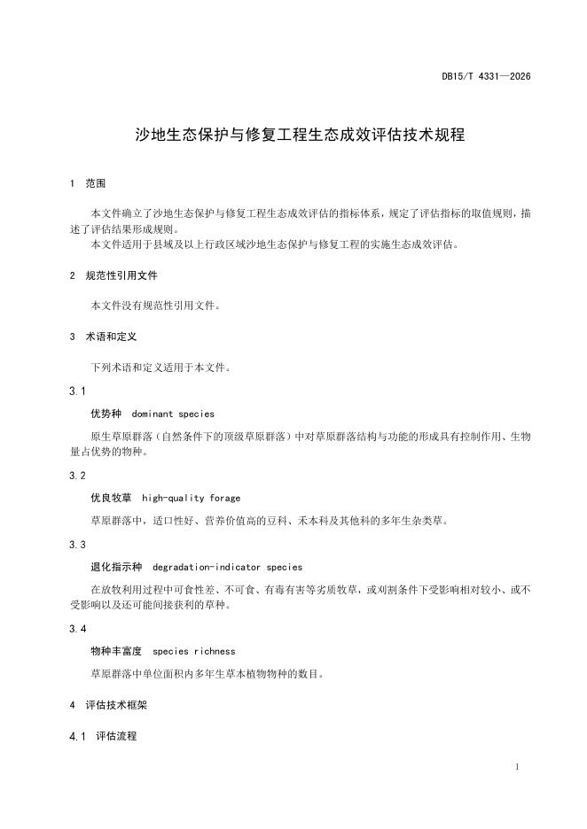 DB15/T 4331-2026 沙地生态保护与修复工程生态成效评估技术规程