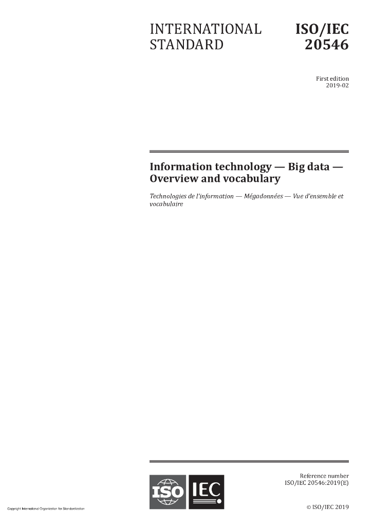 ISO/IEC 20546-2019 信息技术 大数据 概述和词汇