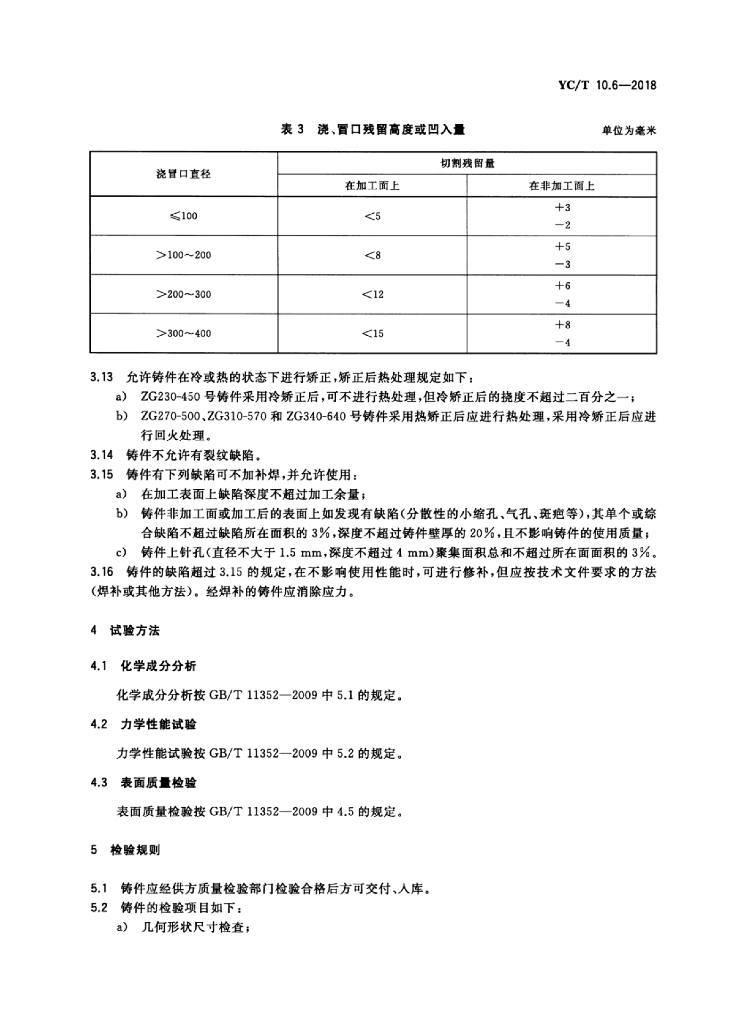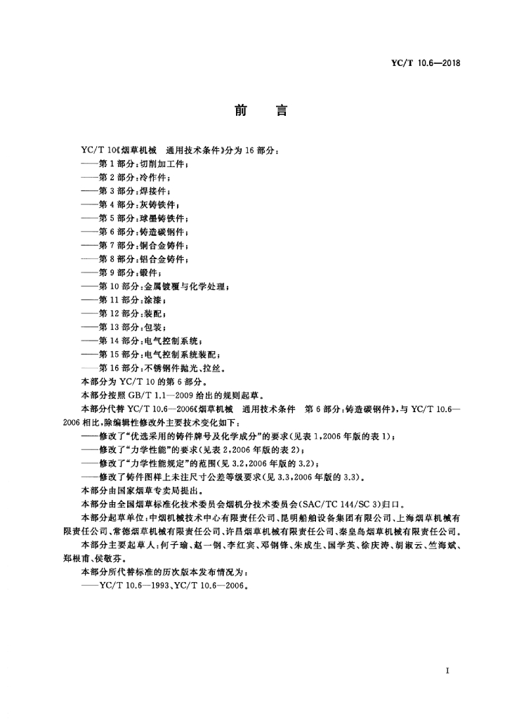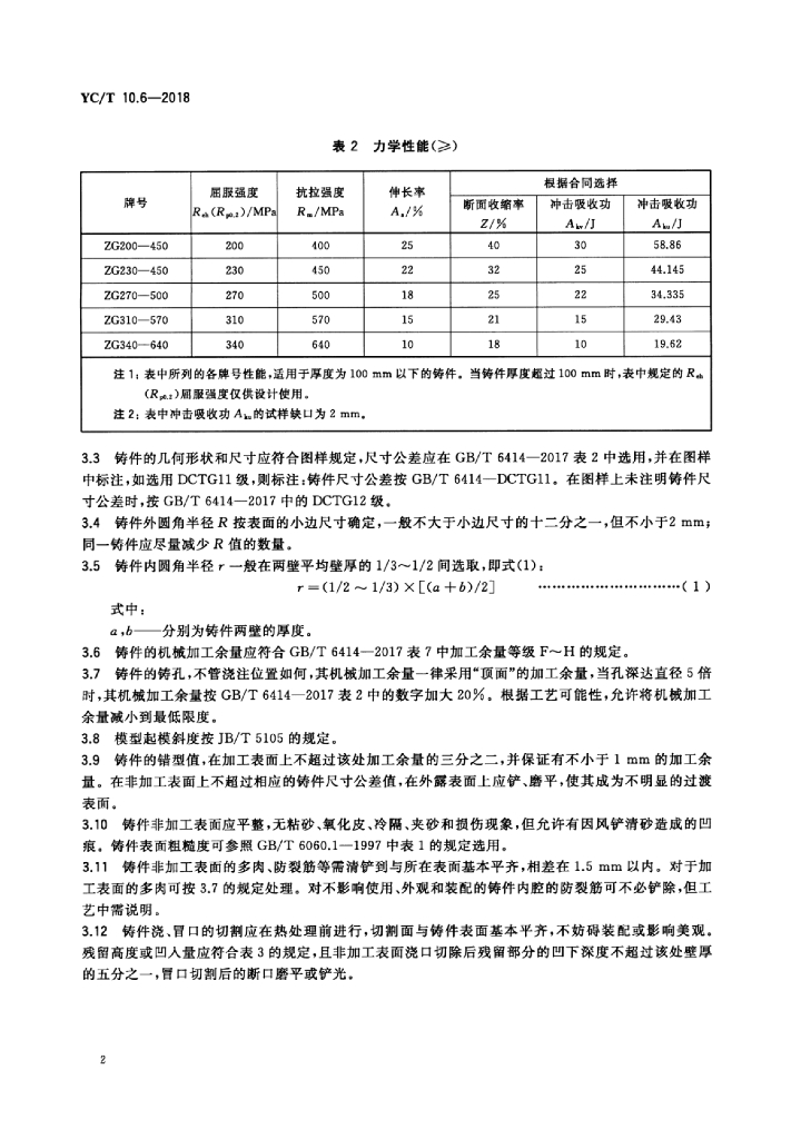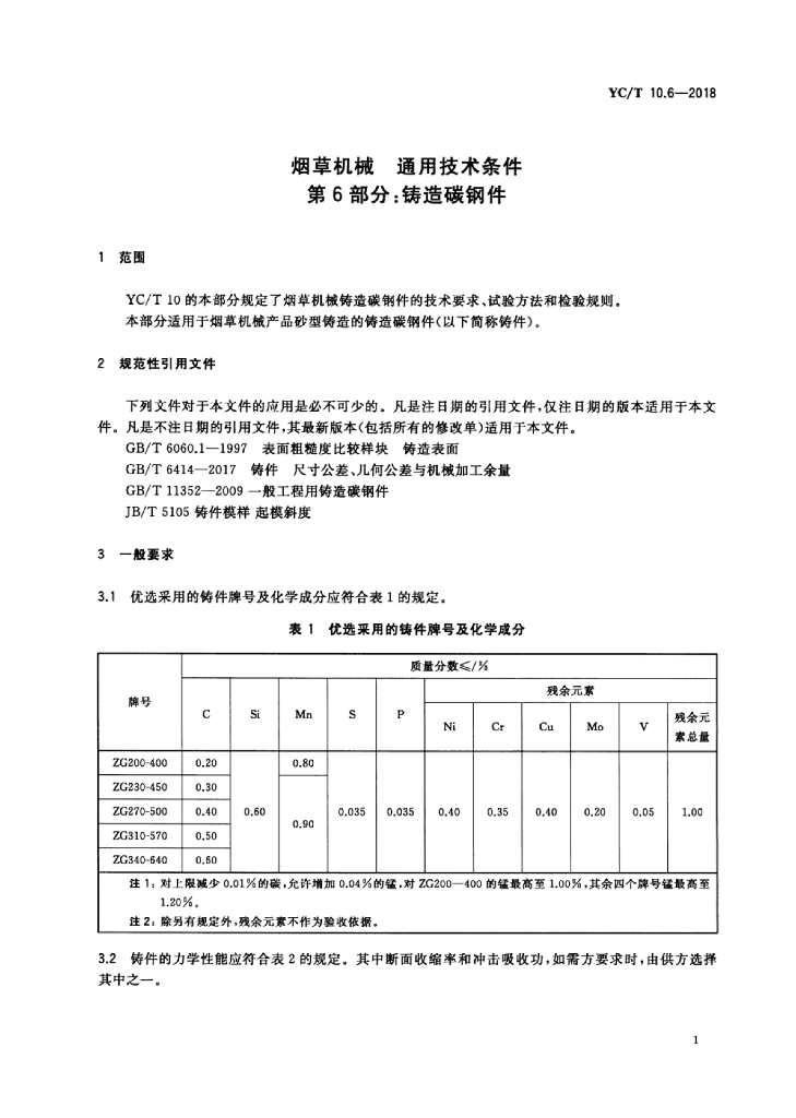 YC/T 10.6-2018 烟草机械通用技术条件 第6部分:铸造碳钢件