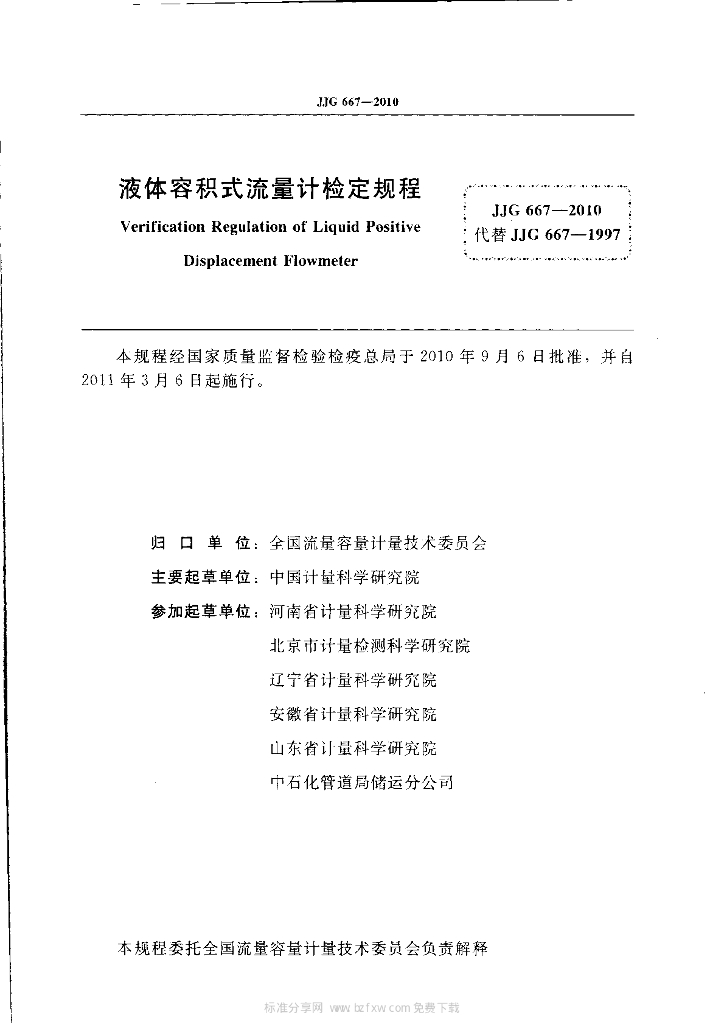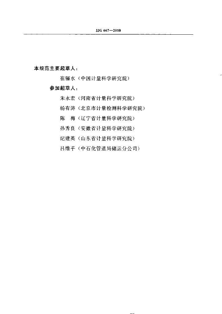 崔骊水(中国计量科学研究院)、朱永宏(河南省计量科学研究院)、杨有涛(北京市计量检测科学研究院)、陈梅(辽宁省计量科学研究院)、孙秀良(安徽省计量科学研究院)、纪建英(山东省计量科学研究院)、吕维平(中石化管道局储运分公司)