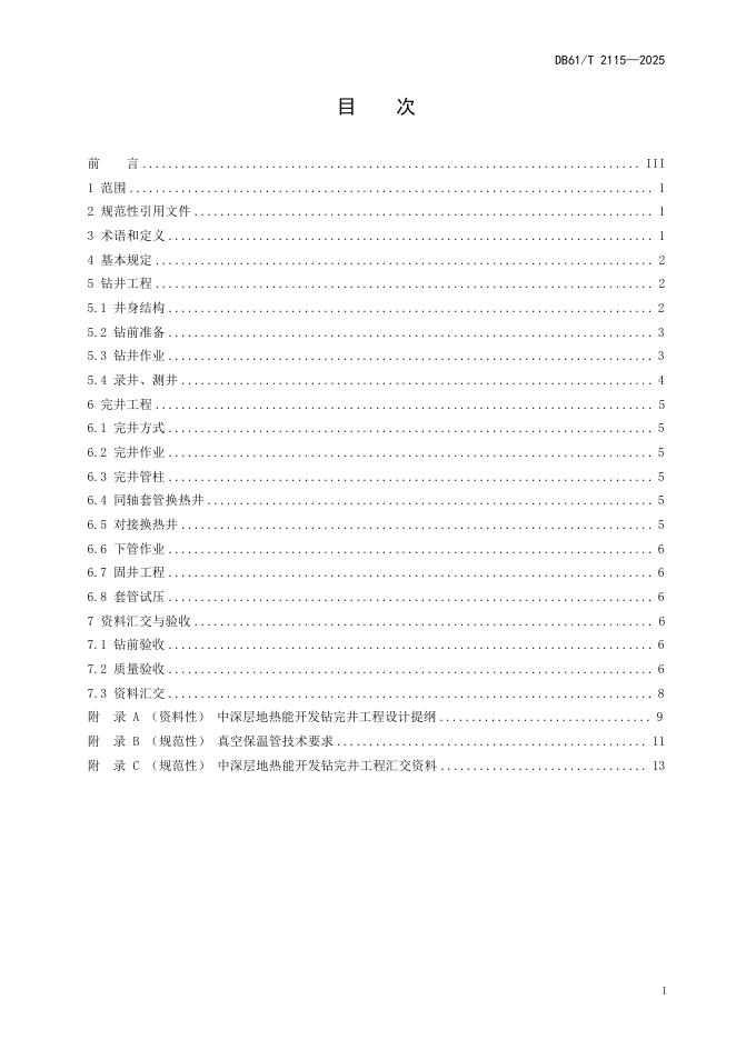 DB61/T 2115-2025 中深层地热能开发钻完井技术规程