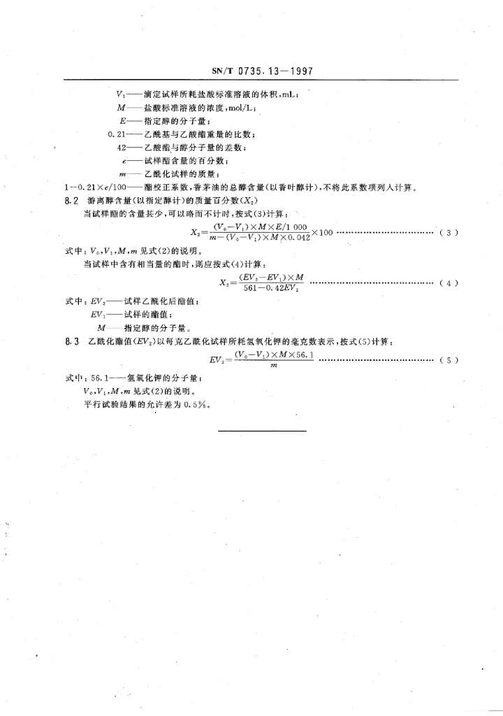 SN/T 0735.13-1997 出口芳香油、单离和合成香料总醇的测定乙酰化法