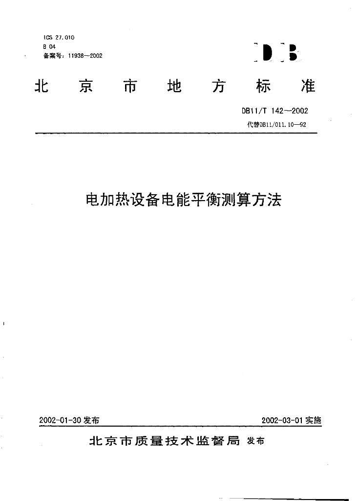 DB11/T 142-2002 电加热设备电能平衡测算方法