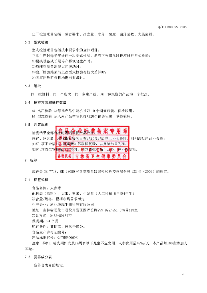 Q/THHR 0009S-2019 人参米
