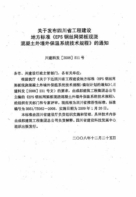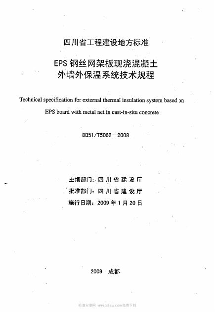 DB51/T 5062-2008 EPS钢丝网架板现浇混凝土外墙外保温系统技术规程