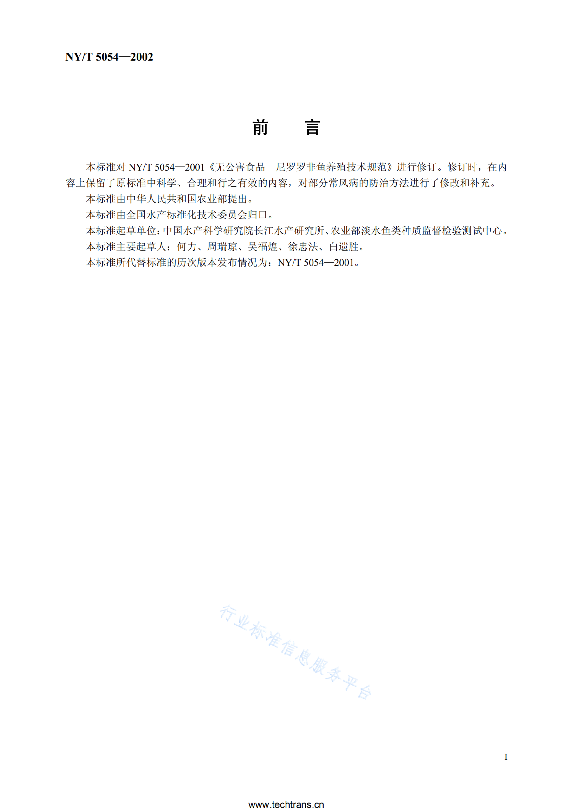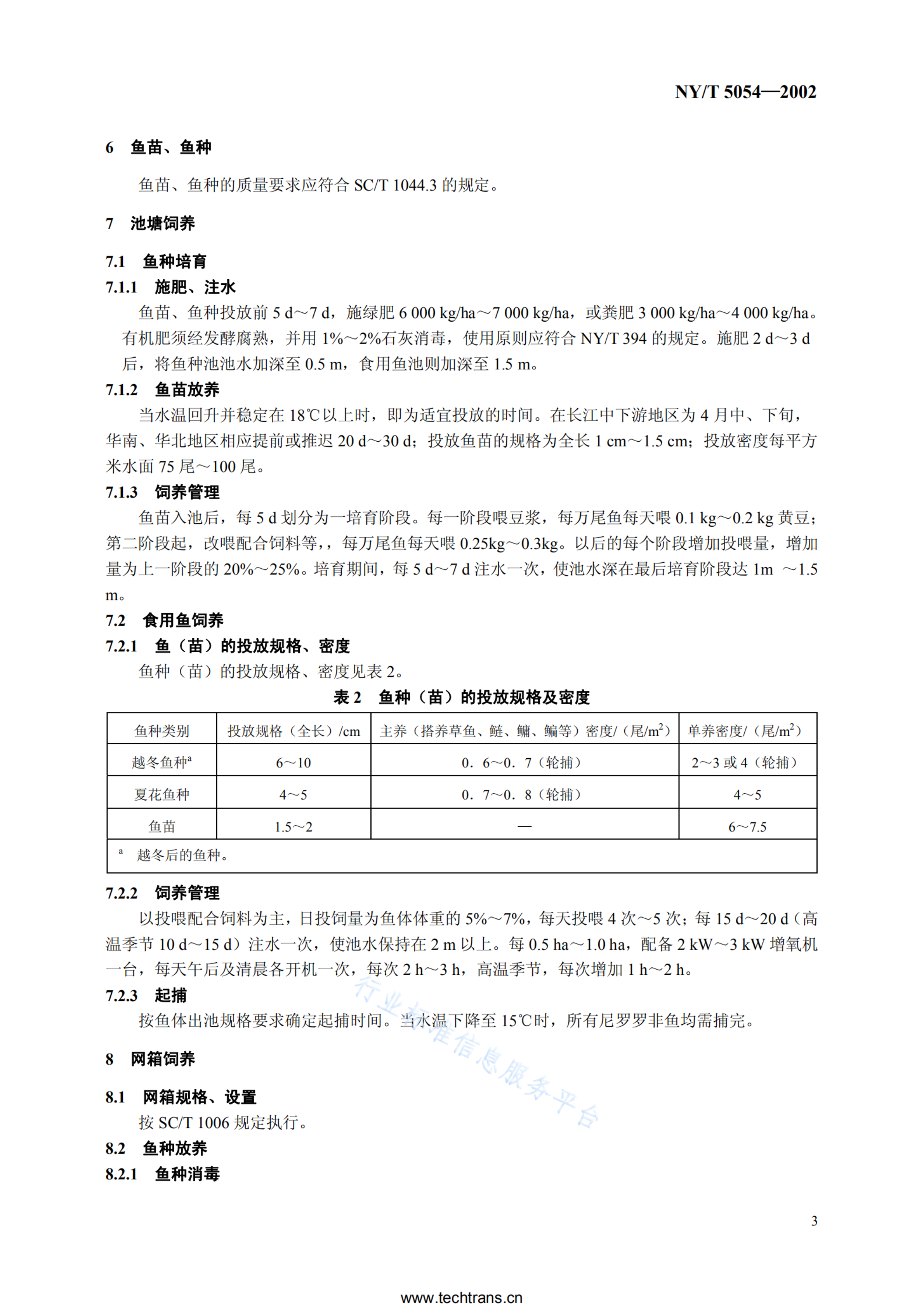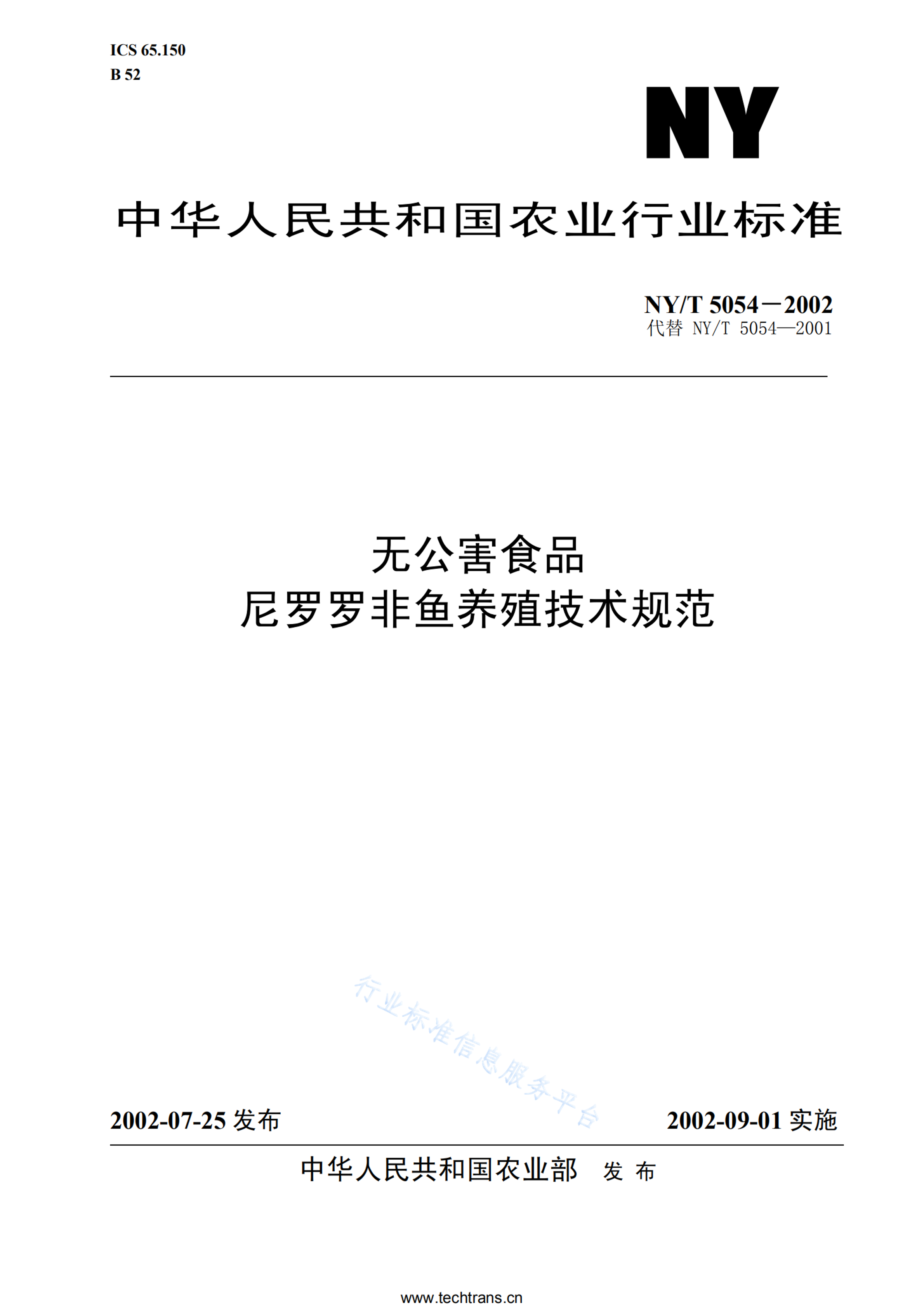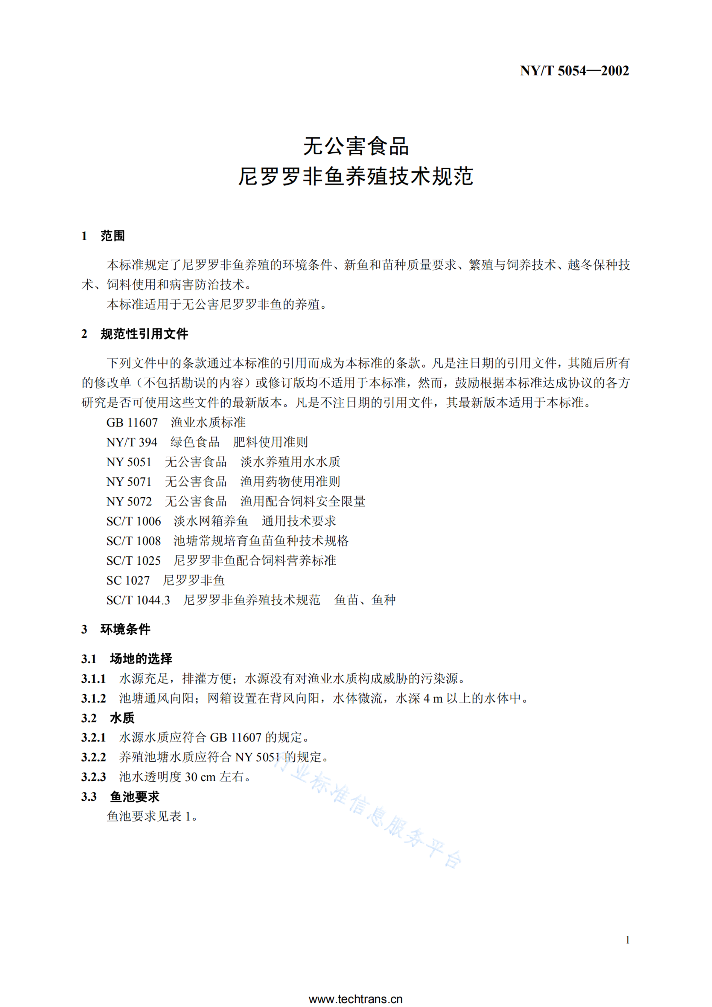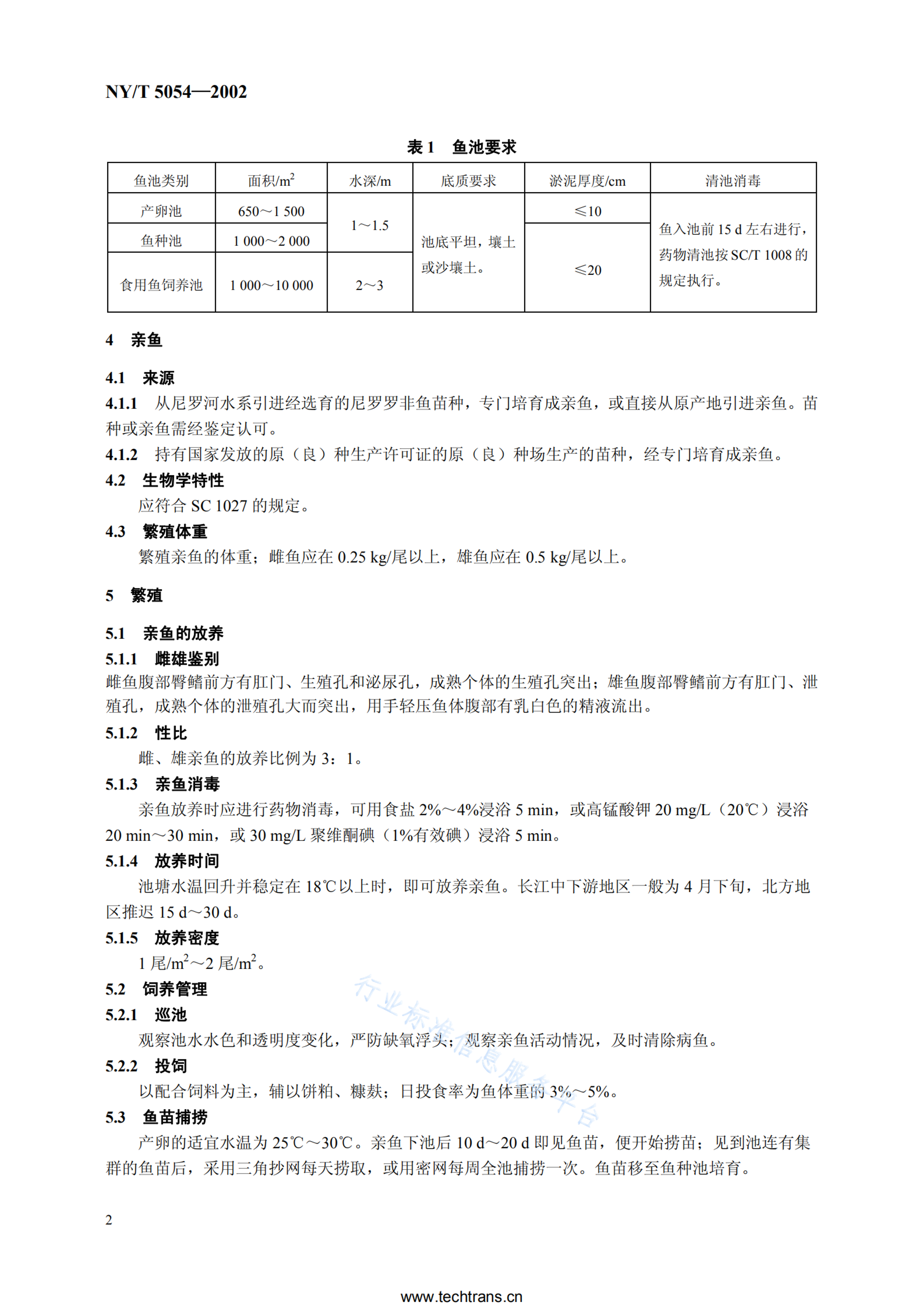 NY/T 5054-2002 无公害食品 尼罗罗非鱼养殖技术规范