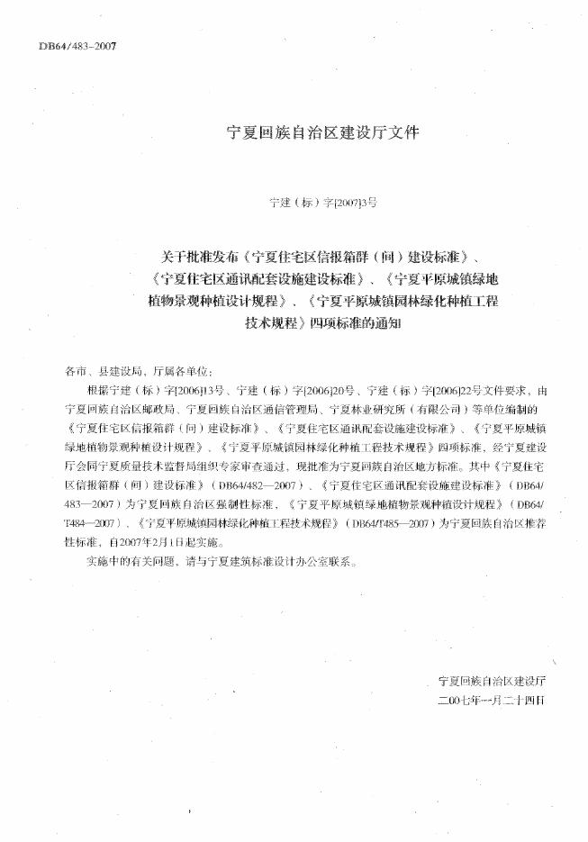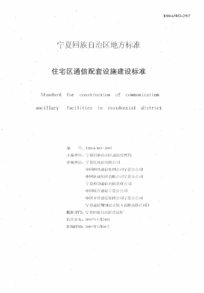 DB64/ 483-2007 住宅区通信配套设施建设标准