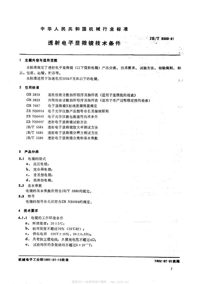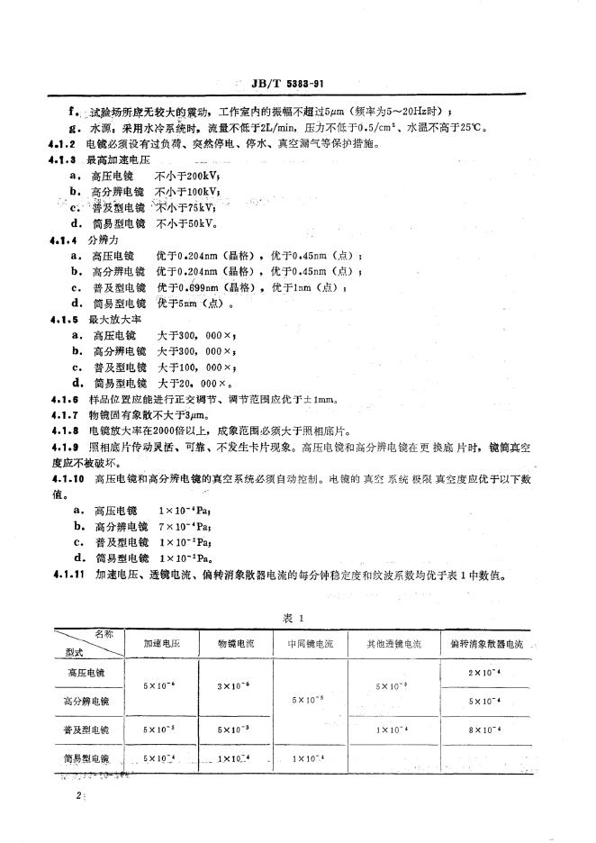 JB/T 5383-1991 透射电子显微镜 技术条件