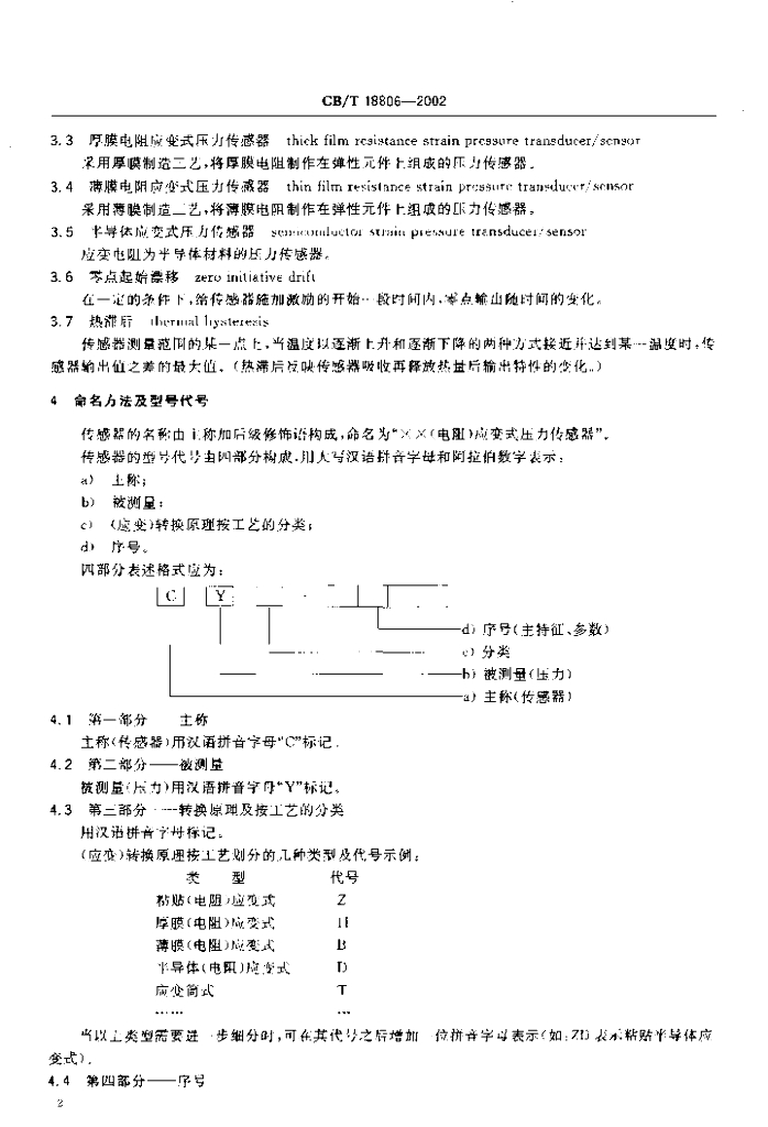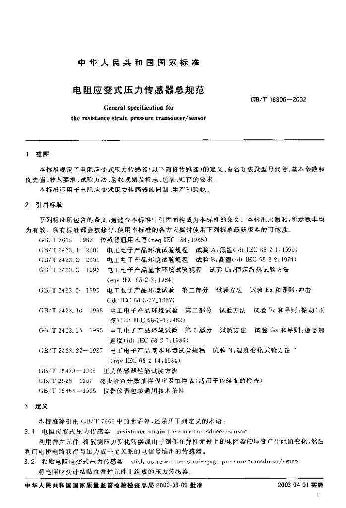 GB/T 18806-2002 电阻应变式压力传感器总规范