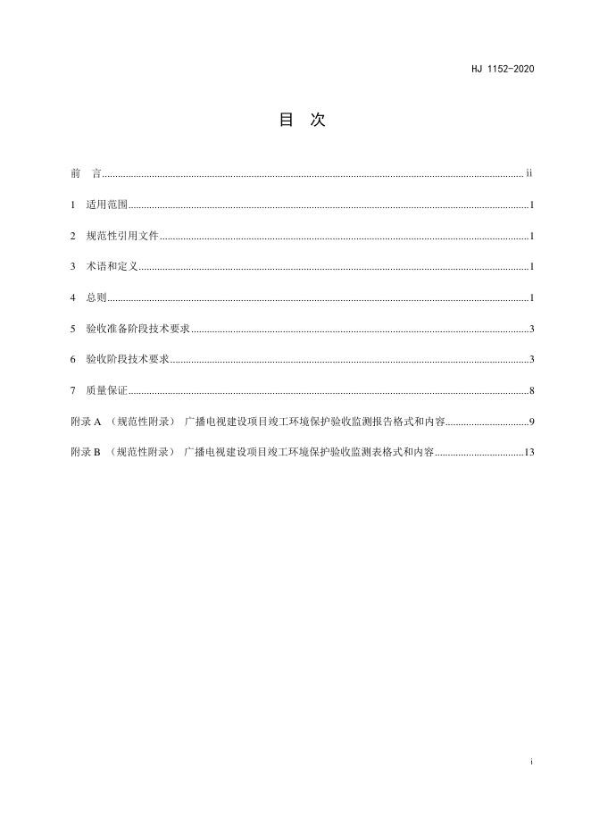 HJ 1152-2020 建设项目竣工环境保护验收技术规范 广播电视