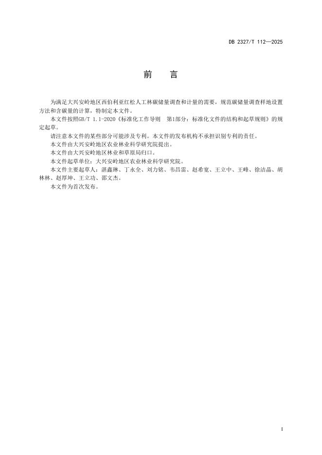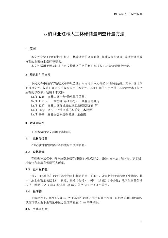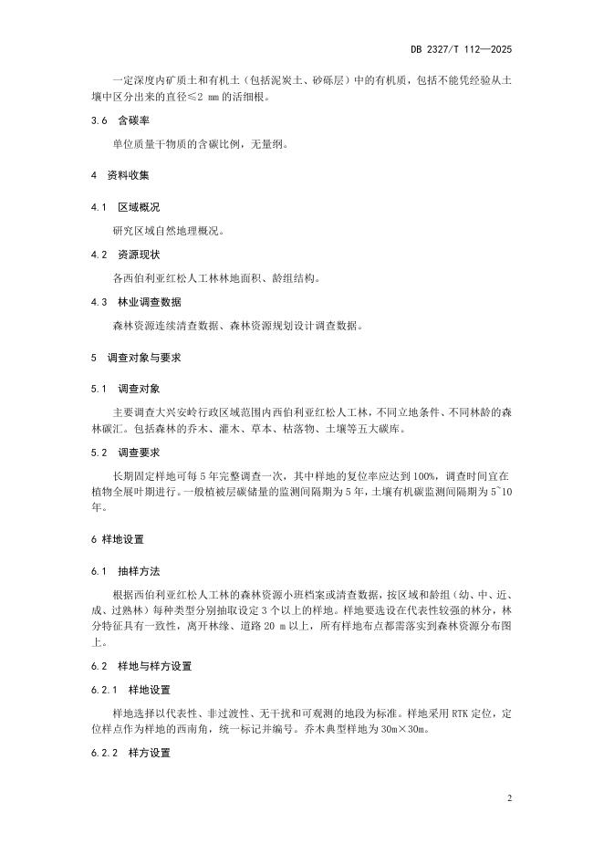 DB2327/T 112-2025 西伯利亚红松人工林碳储量调查计量方法
