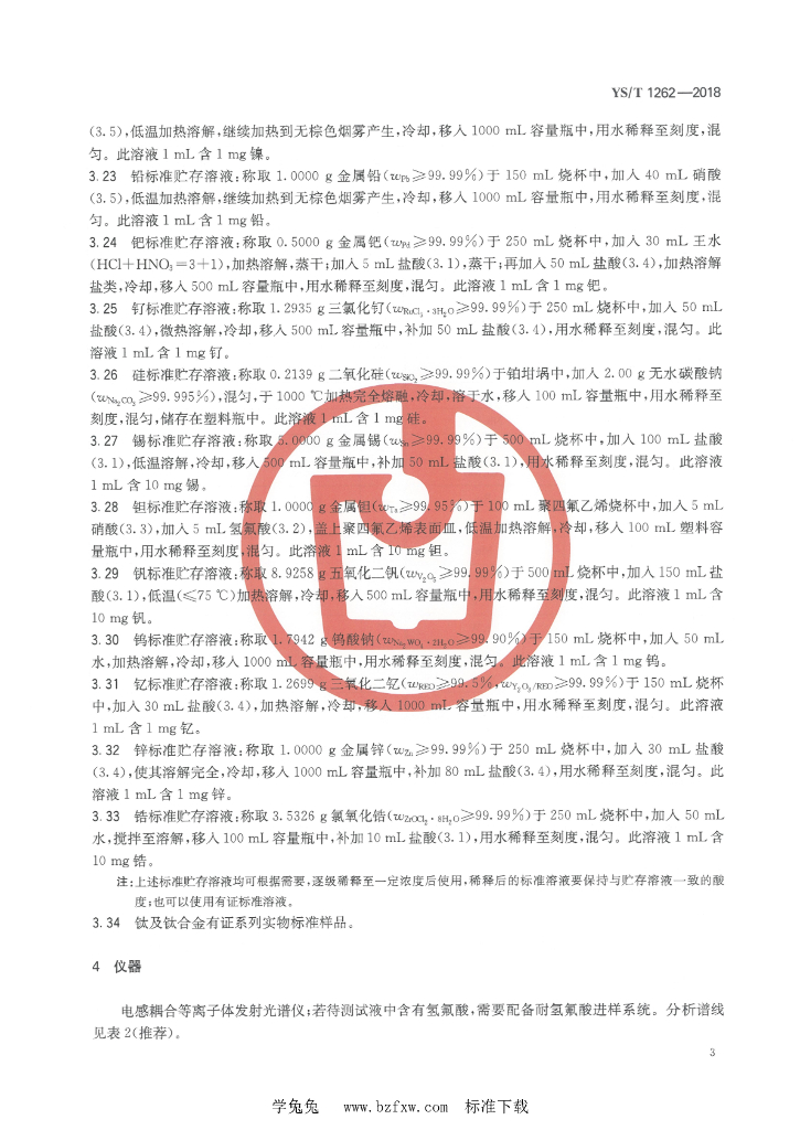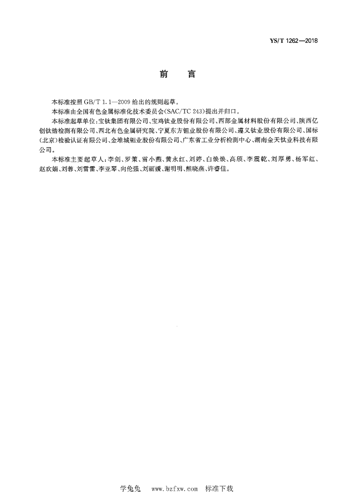 YS/T 1262-2018 海绵钛、钛及钛合金化学分析方法 多元素含量的测定 电感耦合等离子体原子发射光谱法