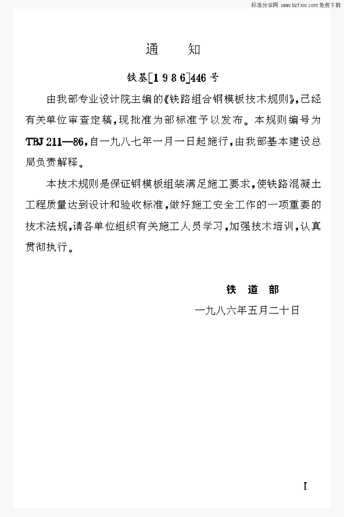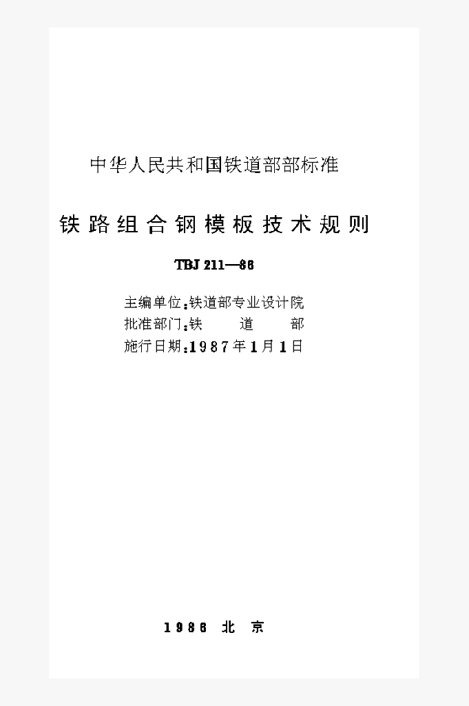 TBJ 211-1988 铁路组合钢模板技术规则