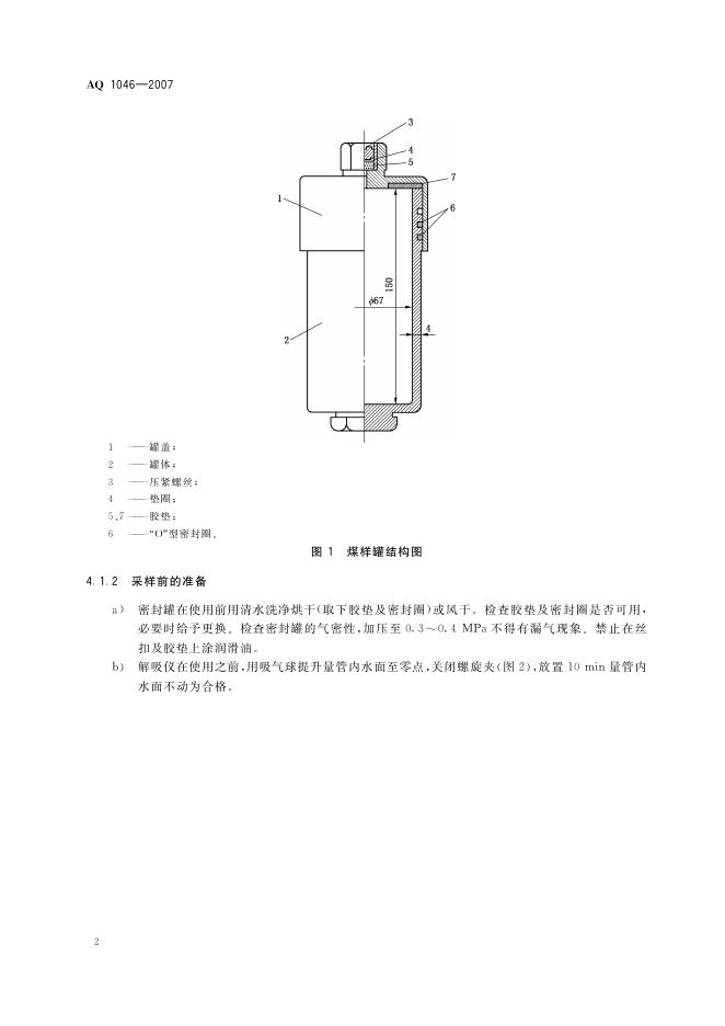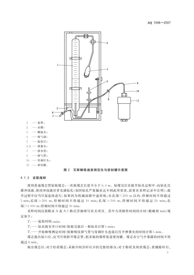 AQ 1046-2007 地勘时期煤层瓦斯含量测定方法