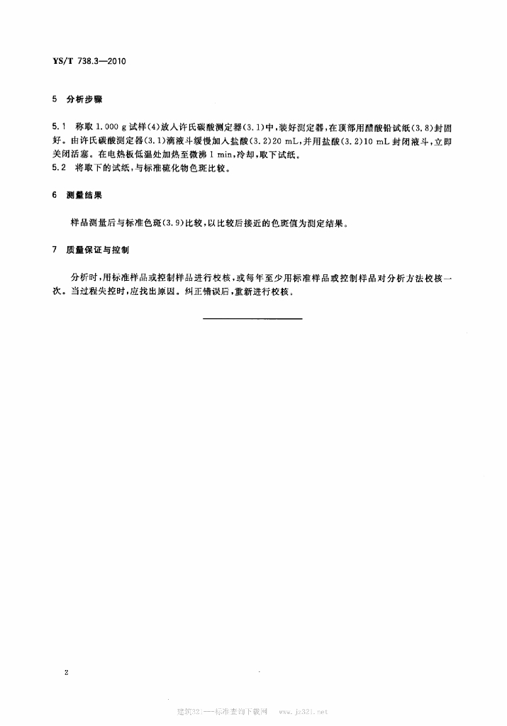 YS/T 738.3-2010 填料用氢氧化铝分析方法 第3部分:硫化物含量的测定