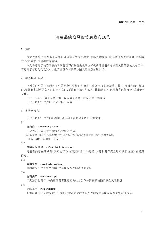DB32/T 5198-2025 消费品缺陷风险信息发布规范
