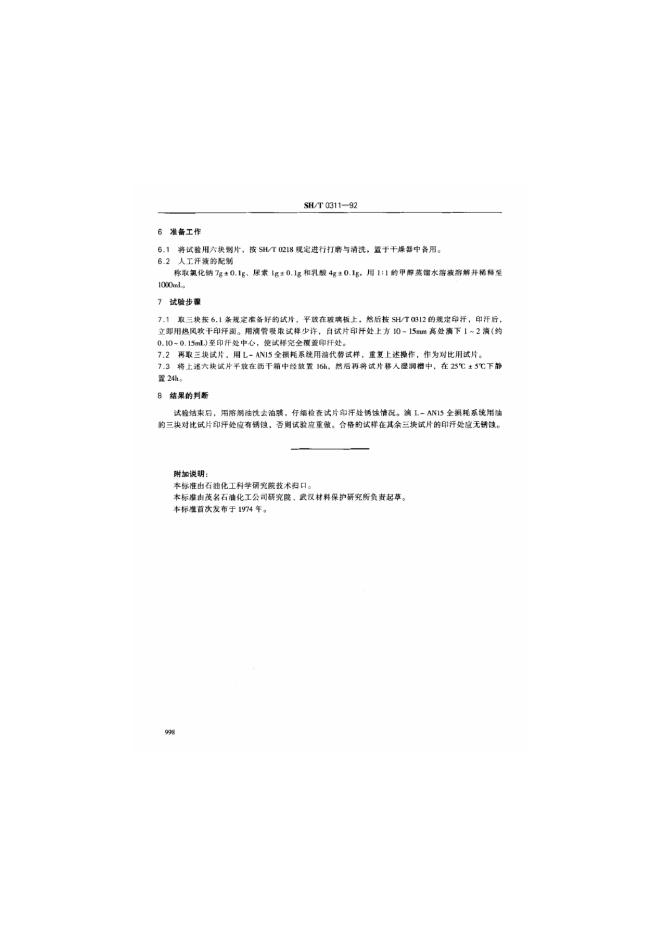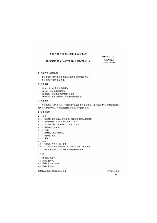 SH/T 0312-1992 置换型防锈油人汗洗净性能试验方法