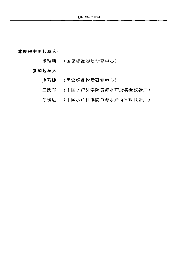 杨瑞康(国家标准物质研究中心)、史乃捷(国家标准物质研究中心)、玉跃军(中国水产科学院黄海水产所实验仪器厂)、苏程远(中国水产科学院黄海水产所实验仪器厂)