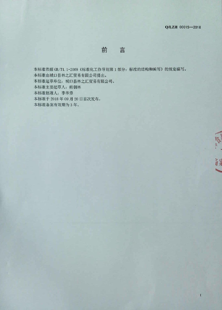 Q/LZH 0001S-2018 干制蔬菜
