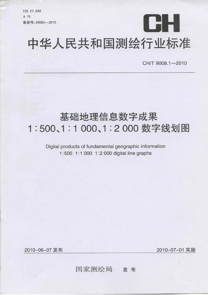 CH/T 9008.1-2010 基础地理信息数字成果1:500 1:1 000 1:2 000数字线划图