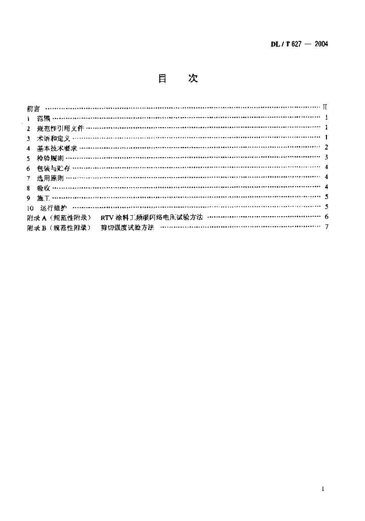 DL/T 627-2004 绝缘子用常温固化硅橡胶防污闪涂料