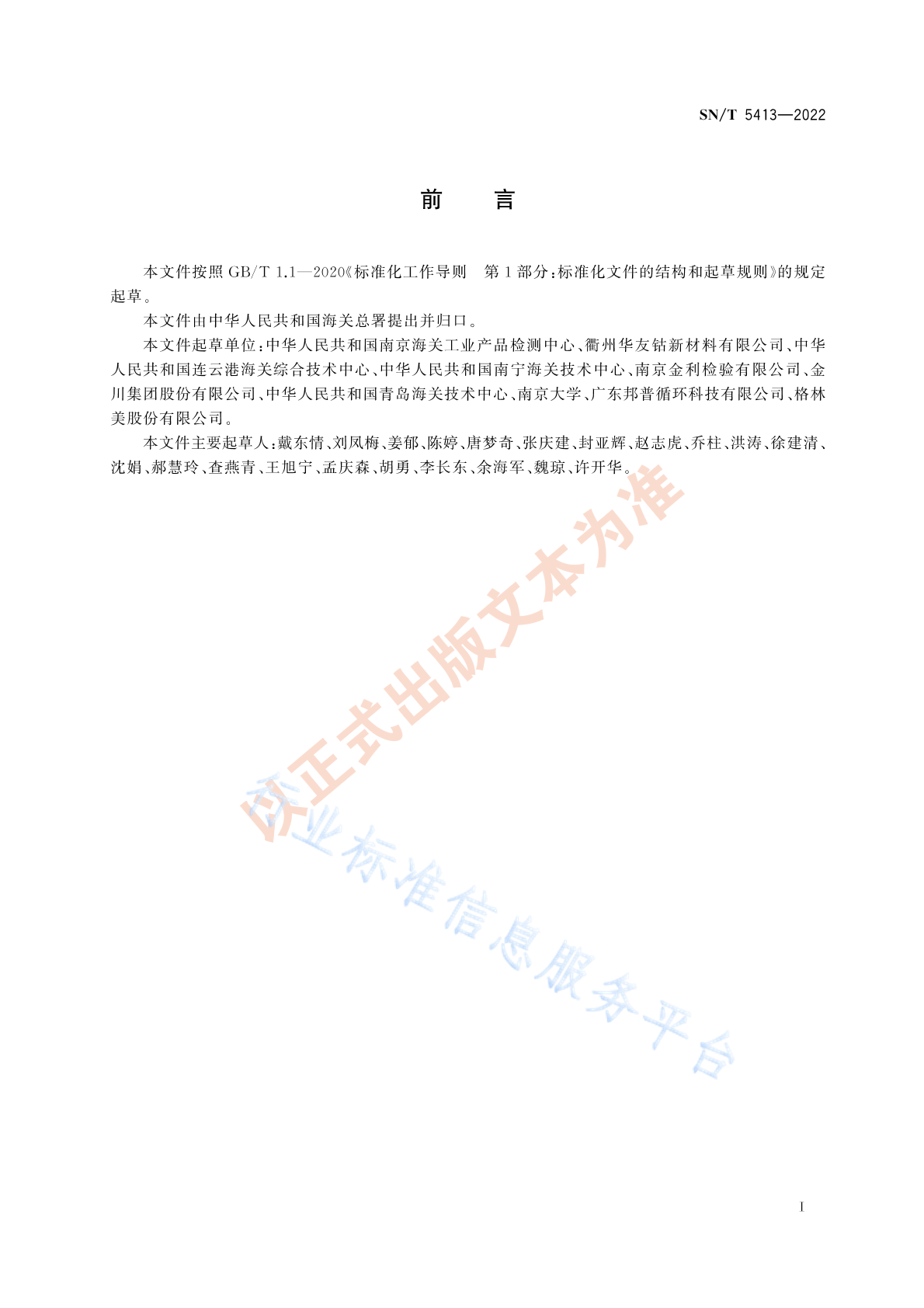 中华人民共和国南京海关工业产品检测中心、衢州华友钴新材料有限公司、中华人民共和国连云港海关综合技术中心、中华人民共和国南宁海关技术中心、南京金利检验有限公司、金川集团股份有限公司、中华人民共和国青岛海关技术中心、南京大学、广东邦普循环科技有限公司、格林美股份有限公司